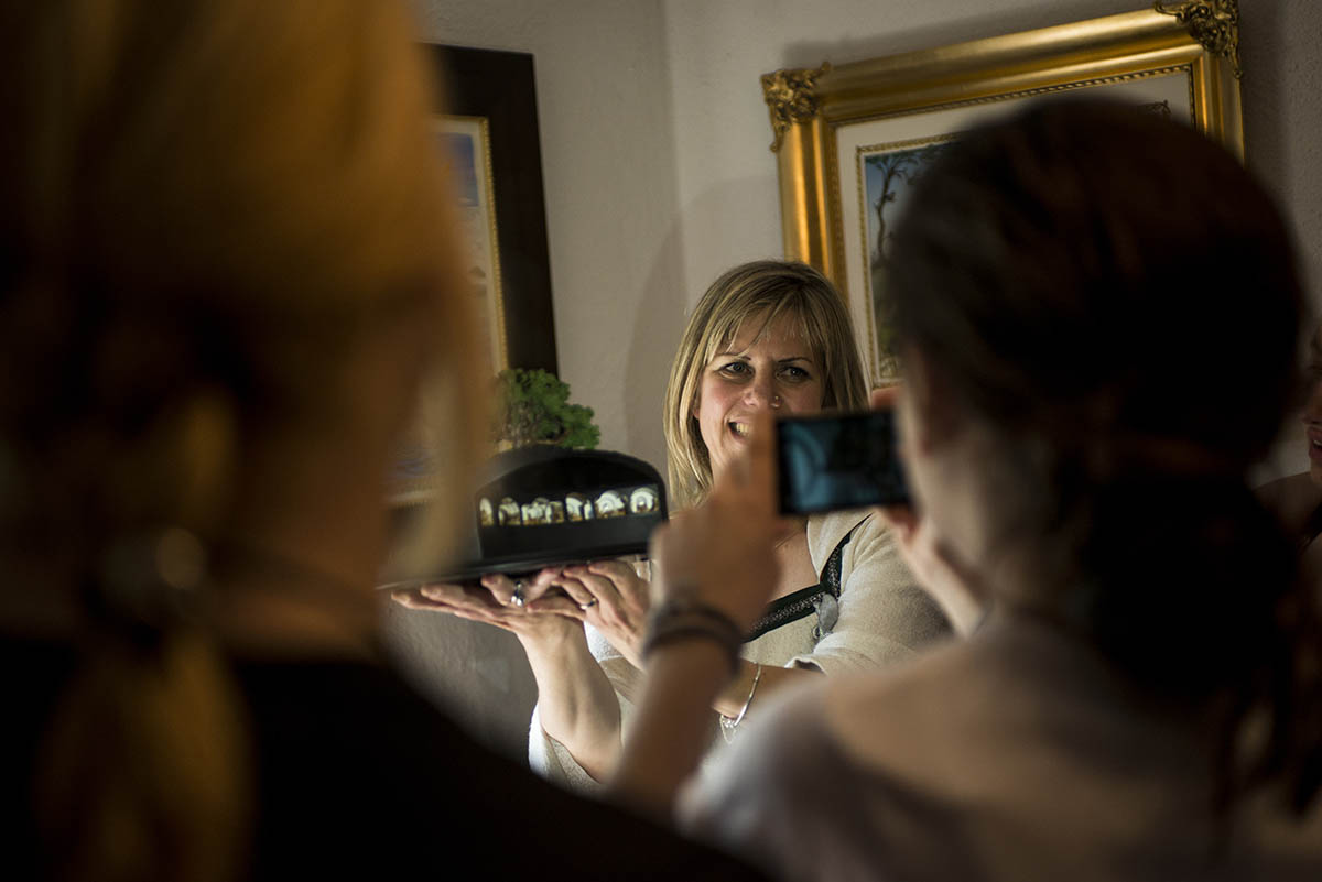Il 26 Aprile, un autobus turistico con ventisette persone a bordo, parte da Toscanella di Dozza (BO) direzione Jenins, Svizzera. Un gruppo eterogeneo, formato da «tolkieniani Doc» saliti a Modena e compaesani di Ivan: tutti curiosi di vedere il museo. Ci sono anche tre soci dell’ArsT tra l’equipaggio di questa bella avventura. Durante il viaggio Ivan racconta aneddoti curiosi, difficoltà, conquiste. Io racconto il mio reportage durato quasi due anni, fotografando ogni momento degno di nota fino all’inaugurazione al pubblico. E mi accorgo che è proprio il pubblico, la vera cartina tornasole del museo. Per gli appassionati di Tolkien, entrare in quella porticina rotonda, rappresenta la chiusura di un cerchio e vedere i loro occhi stupefatti davanti all’ingresso del Greisinger Museum, mi ha fatto realizzare quanto di grande è stato fatto in questi anni.