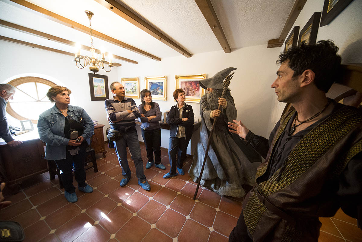 Oltre a me e Ivan, anche lo stesso Greisinger vuole essere presente alla visita del primo tour italiano, insieme alla guida ufficiale Enza Donatsch Sava e a Simone Gallotti: molti di noi vestono un costume a tema, così da accompagnare i visitatori nel loro viaggio nel miglior modo possibile. L’occasione del primo tour organizzato, é veramente un evento importante e la prima giornata calda di primavera contribuisce a renderla ancora più memorabile. Il gruppo è rimane nel museo un intero pomeriggio, tanta è la curiosità di conoscere i dettagli delle opere esposte, i dipinti, i pezzi rari da collezione, le opere e le scenografie. Alla sera una cena in stile hobbit in un localino vicino al museo, con risate birra e vino, poi dritti in Hotel a dormire. Il giorno seguente, una sosta è stata fatta al Giger Bar di Coira (realizzato dal compianto padre dei tre film di Alien, Hans Ruedi Giger, progettista e creatore dello Xenomorfo e di tutto l’universo alieno) e una seconda tappa per la visita al Castel Grande di Bellinzona, nonostante la pioggia, mettono la firma a questo incredibile viaggio nella Terra di Mezzo. Una scommessa riuscita? Un esperimento da rifare? Penso proprio di si… Eravamo titubanti e preoccupati per le difficoltà organizzative e l’eterogeneità del gruppo, ma la realtà ha superato le aspettative. Ci ritorneremo? Sicuramente si… Andata e Ritorno… (dall’Italia)