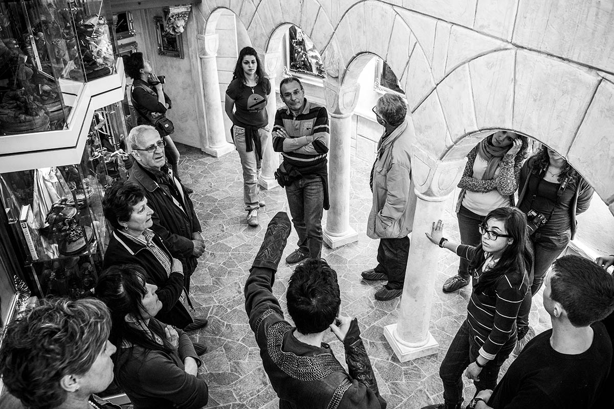 Dicembre: l’Associazione Romana Studi Tolkieniani in collaborazione con l’Istituto Filosofico Studi Tomistici di Modena decidono di organizzare una serata sul Greisinger Museum: la sua storia, i particolari della collezione, aneddoti vari. I relatori sono Ivan Cavini (direttore creativo del museo, nonché ideatore degli allestimenti scenografici) e il sottoscritto, Alessio Vissani, come fotoreporter e compagno di viaggio. La serata trascorre piacevolmente, con il pubblico rapito dalle immagini e dal racconto del «dietro le quinte». Una bella serata tra persone che condividono una passione. Passa qualche mese e Ivan pensa di organizzare una gita, con qualche amico alla volta del museo, ma quel seme che avevamo piantato durante la conferenza comincia a dare i suoi frutti e la notizia arriva alle orecchie di Claudio Testi.