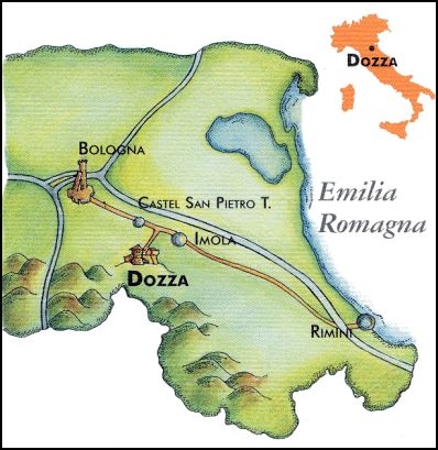 Dozza è a 3 chilometri dalla Via Emilia, tra Bologna e Imola, da cui dista rispettivamente 25 e 6 chilometri.