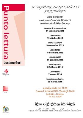 Il 14 settembre 2015 si è tenuto il primo incontro del gruppo di lettura per presentazione l’iniziativa al pubblico. Bonechi sarà il “moderatore” del gruppo, che avrà il compito di stimolare la riflessione sui punti letti del romanzo, raccogliendo poi le fila in un discorso unico. Lunedì 12 ottobre si inizierà con la lettura vera e propria, con un focus sul primo libro del Signore degli Anelli.
