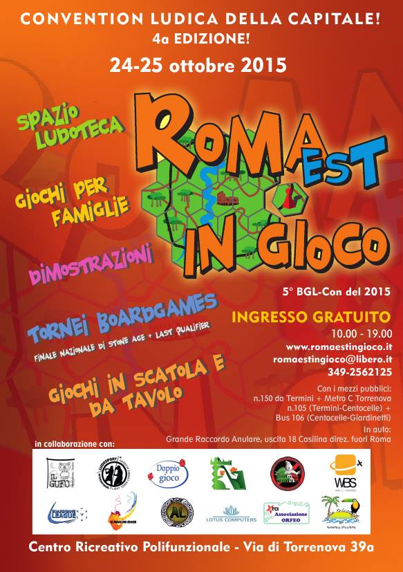 Organizzato quest’anno dall’Associazione Il Gufo e dal negozio Doppio Gioco, ospiterà per la prima volta una finale nazionale della Boardgame League, quella di Stone Age. La sede della Fiera si trova in via di Torrenova 39a, una traversa di Via Casilina (uscita 18 del GRA). Oltre che con l’automobile è possibile raggiungere il centro polivante prendendo la metropolitana C, scendendo alla fermata “Torrenova”, poi da lì 500 metri a piedi per arrivare a destinazione.