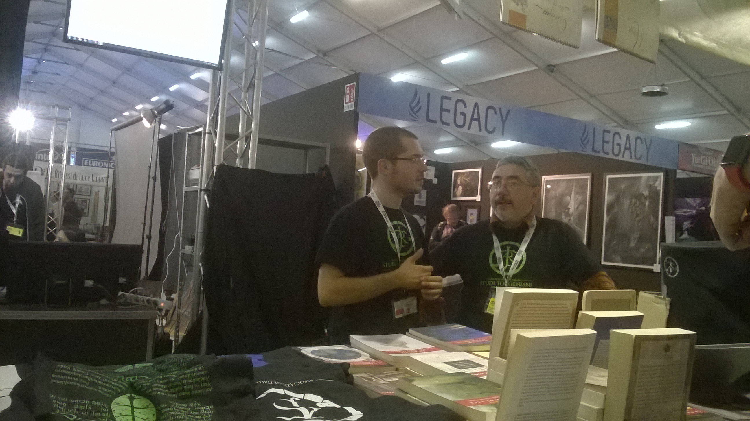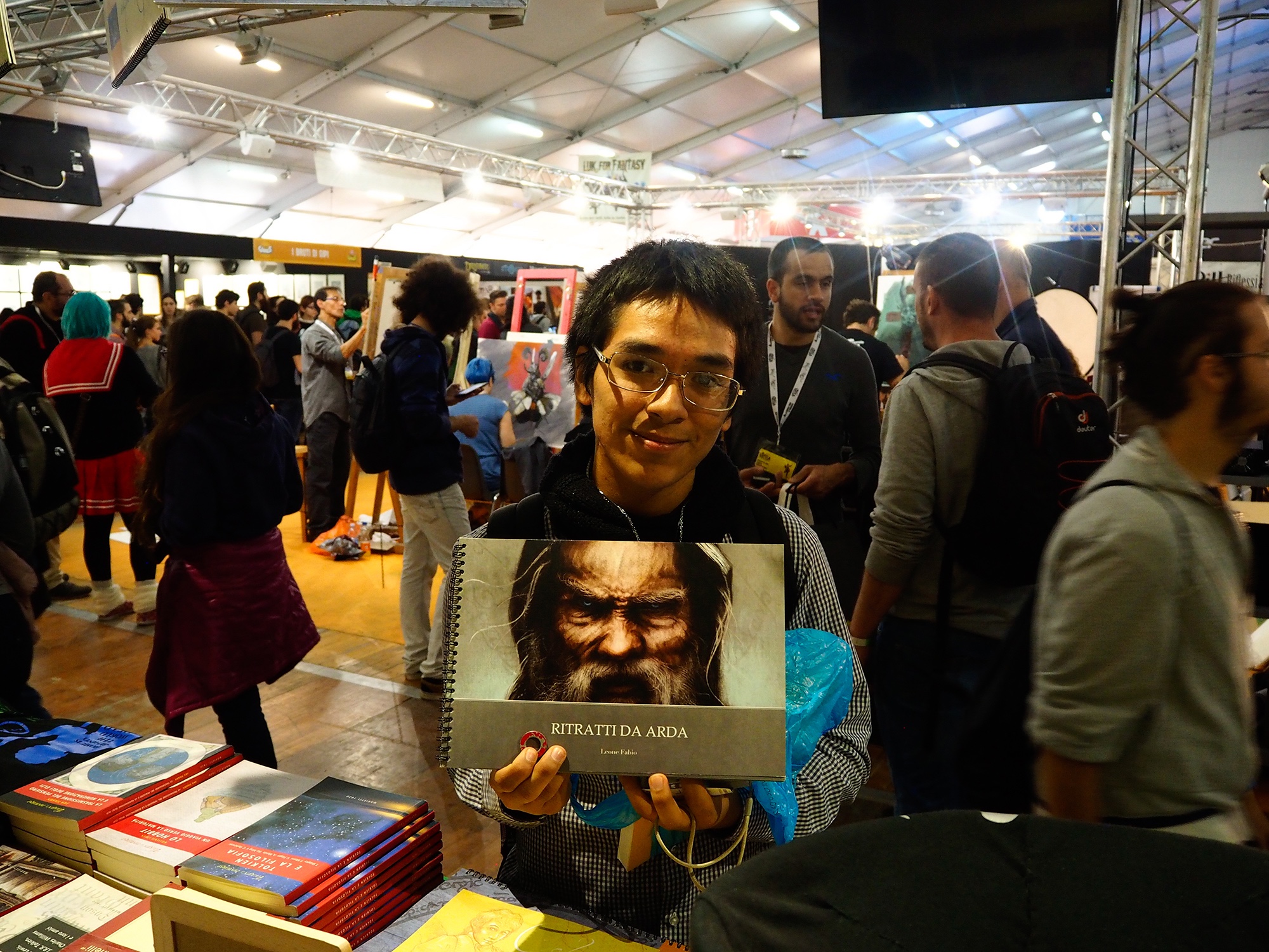Se per gli amanti del Signore degli Anelli la fiera offriva tutte queste opportunità, il difficile è stato coglierle. Chi voleva un luogo sicuro in cui incontrare altri lettori di Tolkien e ricevere risposte da persone competenti, si è rivolto invece al nostro stand, all’interno del padiglione Carducci: uno stand rinnovato, raddoppiato e pieni di curiosità, libri di approfondimento e il nuovo calendario 2016, con le immagini tutte ad opera di Andrea Piparo, giovane talento cresciuto molto, anche dal punto di vista artistico, negli ultimi mesi. Un porto sicuro, visibile anche da lontano, in quel mare in burrasca che è stato il padiglione Games soprattutto nel fine settimana.