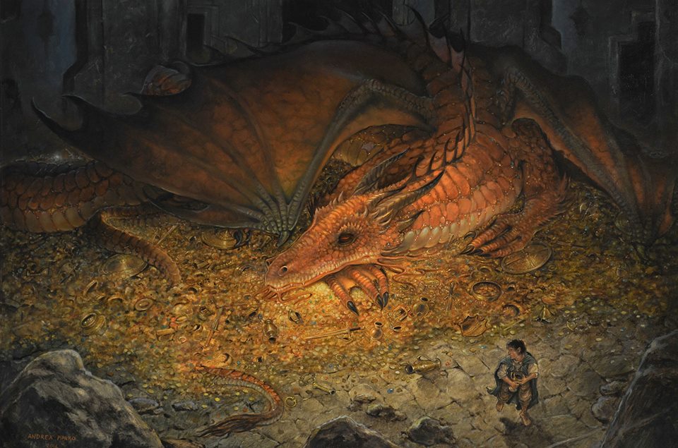 “Si udì un sibilo assordante. Una luce rossa sfiorò le cime delle alte rocce. Giungeva il drago.”