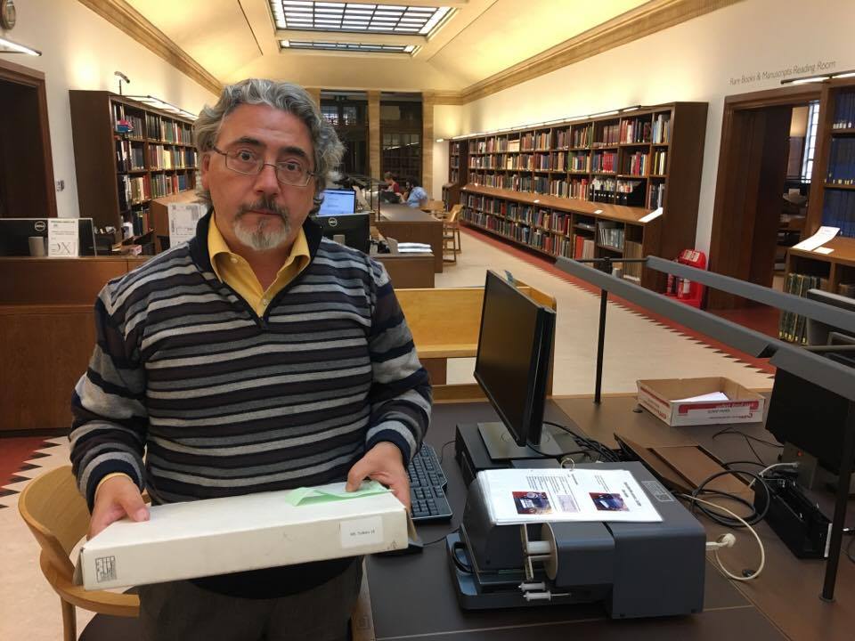 Oxford, ore 9. Siamo già davanti alla Weston Library, per l’ammissione alle parti riservate della Bodleian. «Qualcuno vi ha risposto alla mail?», domanda l’impassibile impiegata dell’ufficio ammissioni. «Siete già stati qui?», è la richiesta successiva. Rispondiamo di sì, abbiamo consultato i manoscritti di Tolkien già nel 2009 e nel 2013. Con mia grande sorpresa, mi stampa subito il tesserino d’accesso, con tanto di fotografia. Per fortuna, sono migliorato rispetto al 2009 e in quella foto sembro più vecchio! La trafila burocratica prosegue ma dopo le scartoffie, si passa direttamente nella sala per il deposito degli effetti personali: per accedere alla sala dei libri rari e dei manoscritti non si può portare nulla, a parte computer e block notes. Non si può neanche mangiare, ma al pian terreno c’è una sala refettorio ben fornita. Saliamo subito al primo piano, impaziente di iniziare il lavoro. Per vedere i libri e i manoscritti abbiamo dovuto prenotarli con due settimane di anticipo, così che oggi sono già qui nella reading room ad attenderci. Questa volta le nostre ricerche sono molto più mirate, Claudio è concentrato sul surrealismo francese, io sul modernismo inglese. Al contrario di quel che si scrive, gli Inklings non erano un gruppo di professori nostalgici di un’età dell’oro che sarebbe dovuta tornare, ma persone ben ancorate al loro secolo, che si tenevano aggiornati, leggevano gli scrittori moderni e ne discutevano, pur avendo posizioni molto diverse tra loro. Ecco, i due le indagini di studio parallele di Claudio e mia si concentrano sugli stessi manoscritti, quelli più teorici: On Faery Stories e A Secret Vice.