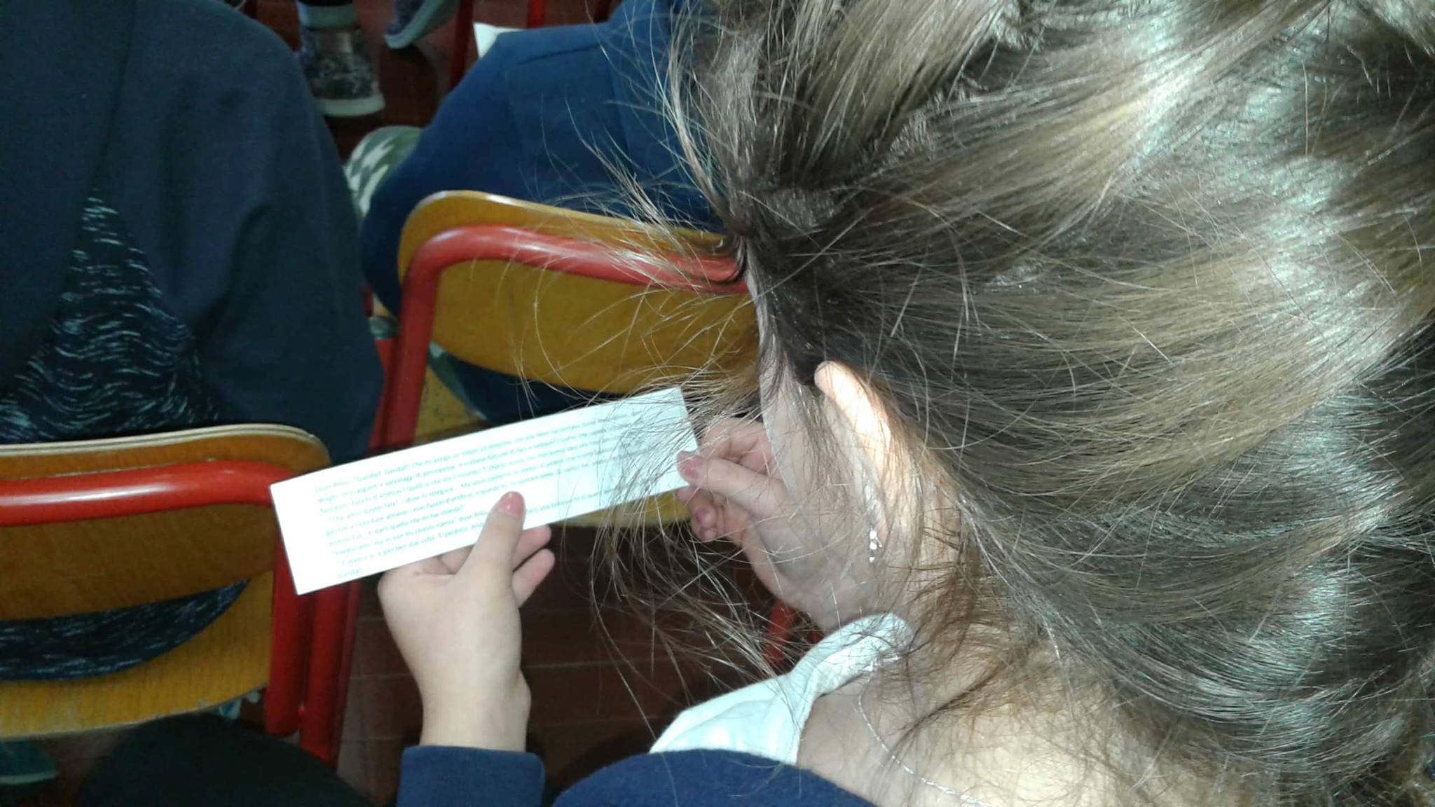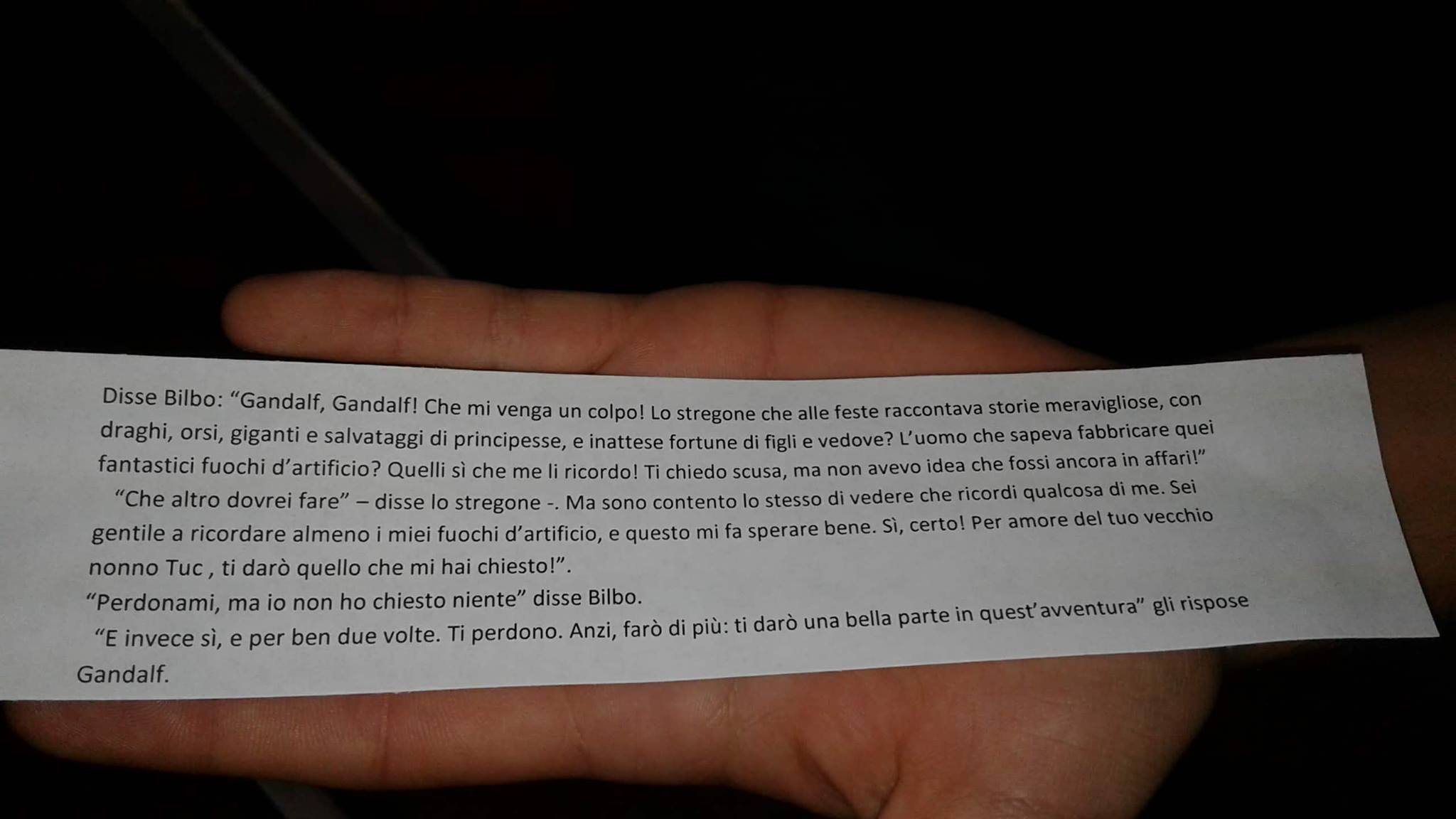 A dicembre, inoltre, un percorso teatrale, con la partnership di AVIS, Associazione Volontari Italiani Sangue, vedrà i ragazzi cimentarsi con la rappresentazione dei popoli della Terra di Mezzo. Tema centrale la solidarietà e il riconoscimento delle relazioni fra microcosmo personale e macrocosmo dell’umanità poiché, se da un lato tutto ciò che accade nel mondo influenza la vita di ogni persona, dall’altro ogni persona tiene nelle sue stesse mani una responsabilità unica e singolare nei confronti del futuro dell’umanità: un’archengemma di inestimabile valore. Per celebrare una data così importante, lo Hobbit Day, il 21 settembre si è svolta l’inaugurazione del progetto davanti alle classi riunite, e per dar il via alla narrazione sulla fiaba più famosa di Tolkien, due ospiti d’onore: lo scrittore Wu Ming 4 e il filosofo Claudio Testi. E il premio finale è stato la conquista di un anello!