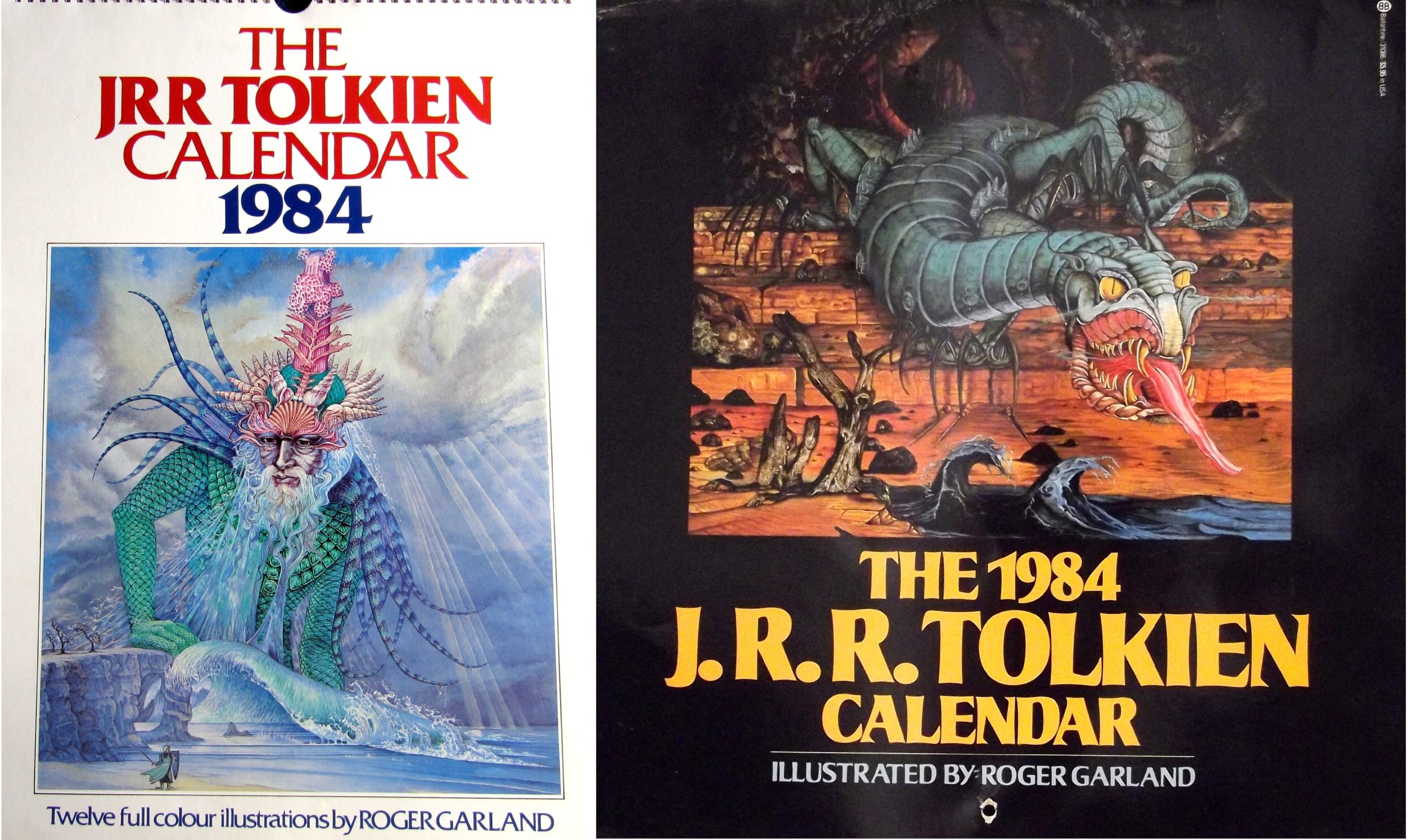 Dal buio completo del 1983, l’unico anno nella storia senza un calendario di Tolkien, nel 1984 irrompe una luce intensa, primordiale e inaspettata, quella delle opere di Roger Garland. L’oscurità era profonda e più grande la sorpresa, se pensiamo che un calendario inglese mancava dal 1979. Rayner Unwin era riuscito con non poche difficoltà e in cinque anni a convincere Christopher Tolkien a prevedere per il calendario nuovi artisti, diversi da suo padre. All’estremo opposto rispetto ad altri illustratori di Tolkien che fanno del realismo e rigore naturalistico le loro principali qualità, i quadri di Garland hanno colori inverosimili ma meravigliosi, abbaglianti ed estremi, quasi psichedelici, che oltre a rappresentare paesaggi fantastici e pertanto liberi, in fondo potrebbero anche riscontrare