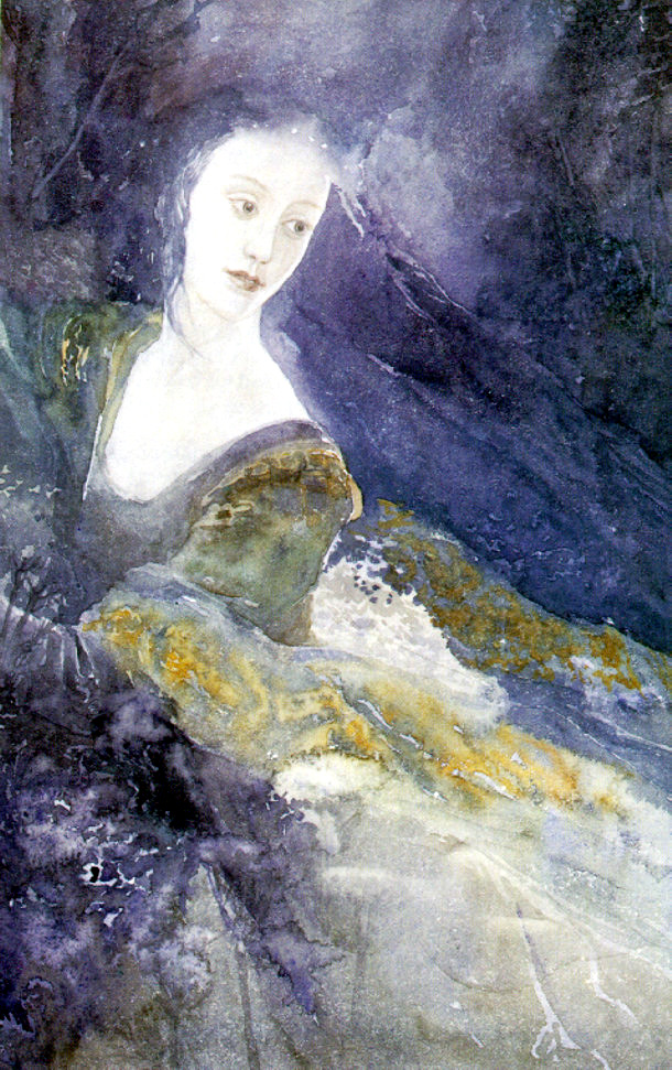 Alan Lee lesse per la prima volta Il Signore degli Anelli nel 1965 ed è sempre stato il suo libro preferito tra le opere di Tolkien: «Ho incontrato per la prima volta Lo Hobbit e Il Signore degli Anelli quando avevo diciotto anni», ricorda. «Era come se Tolkien avesse preso tutti gli elementi che avrei mai voluto in una storia e li avesse intrecciati in un’unica enorme narrazione senza soluzione di continuità. E, cosa ancora più importante per me, aveva creato un luogo: un vasto, bellissimo, fantastico paesaggio – che è rimasto nella mente molto tempo dopo che i protagonisti avevano terminato le loro battaglie e si erano separati». Come abbiamo raccontato nella puntata precedente, Alan Lee entrò con la sua arte nella Terra di Mezzo con il Tolkien Calendar 1987, illustrandolo insieme a un incredibile team di artisti visuali, di cui fecero parte anche Ted Nasmith, John Howe e Roger Garland. Lee divenne celebre nel 1991 quando, per celebrare il centesimo anniversario della nascita di Tolkien, la HarperCollins gli chiese di realizzare 50 dipinti per illustrare Il Signore degli Anelli. L’artista si è immerso in questo lavoro per due anni, ottenendo illustrazioni così perfette, e così universalmente acclamate, che sono ora ineluttabilmente legate alla grande storia di Tolkien per i lettori di tutto il mondo. La ricca edizione speciale rilegata del Signore degli Anelli chiamata Centenary Edition ha avuto nove ristampe in inglese ed è stata poi usata per le edizioni deluxe in italiano anche da Bompiani. Successivamente ha illustrato Tolkien’s Ring di David Day e l’edizione del 1997 di Lo Hobbit, le copertine dei volumi dal VI al IX della History of Middle Earth e numerose altre opere di Tolkien. L’artista, infatti, è sempre riuscito anche a tenere uno stretto legame con il mondo del libro, illustrando le pubblicazioni postume di Tolkien: I Figli di Húrin, Beren e Lúthien, La Caduta di Gondolin e la nuovissima edizione de I Racconti Incompiuti (2020), nonché Shapeshifters: Tales from Ovid’s Metamorphoses (raccontato di Adrian Mitchell) e The Wanderer (una splendida edizione della Folio Society di poesie in inglese antico). Nel 1998 ha vinto il Premio World Fantasy come miglior artista. La tecnica pittorica utilizzata da Alan Lee è da sempre l’acquerello, ma sono celebri suoi schizzi a matita, come quelli nei meravigliosi sketchbook dello Hobbit e del Signore degli Anelli.
