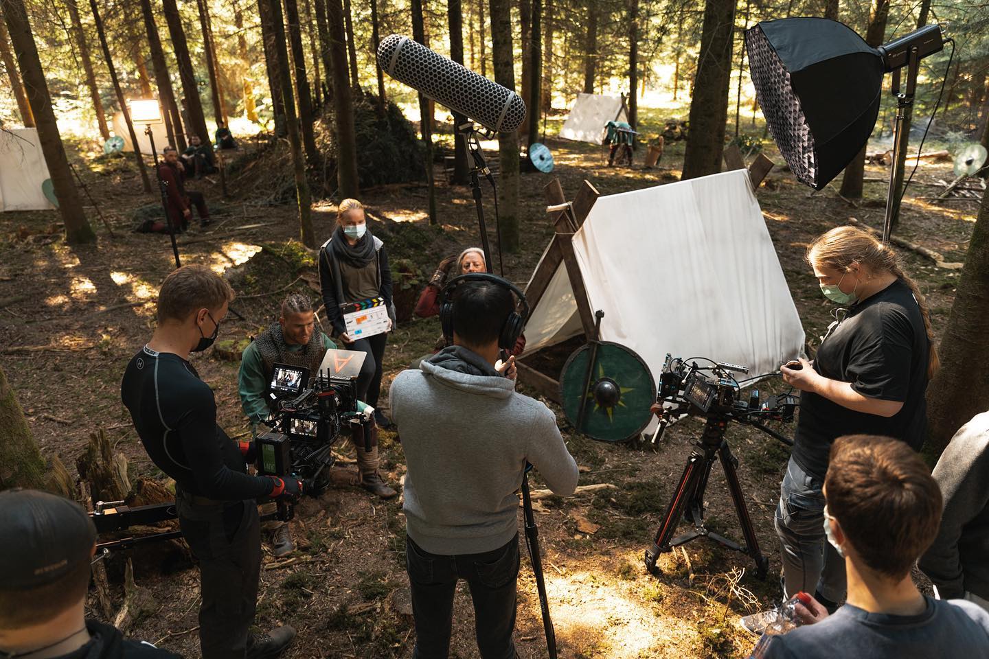 L’ultimo blocco di riprese è stato girato nel 2021 in tre fine settimana di fila. Prima una ripresa del primo blocco e poi tre giorni di scene di massa con quasi 30 attori davanti e fino a 40 membri della troupe dietro la macchina da presa. «Le scene di massa sono state un’enorme sfida in termini di organizzazione e logistica. Non solo abbiamo dovuto trovare e portare tutte le persone, ma abbiamo anche dovuto provvedere al cibo e all’alloggio per il cast e la troupe. Durante i due giorni di riprese della battaglia, abbiamo dovuto affrontare forti piogge e molto rapidamente il terreno del campo base si è trasformato in fango. Il maltempo è stato impegnativo per la logistica, il dipartimento tecnico e per tutti i membri del cast e della troupe. Tuttavia, la motivazione è stata altissima, soprattutto tra gli attori, che hanno dato il massimo e hanno tirato fuori le scene nonostante la pioggia e il freddo». Così a maggio 2021 si è passati alla post-produzione: da oltre dieci terabyte di dati dei dieci giorni di riprese si sono ricavate 23 scene da collegare insieme per fare una storia unica. «Dal momento che gli attori ci hanno dato molte varianti diverse, spesso non è facile sceglierne una. Allo stesso tempo, stiamo lavorando sugli effetti, sul sound design e anche la musica è in fase di composizione». Dopo alcune battute d’arresto, a ottobre 2022 si è giunti alle ultime settimane di produzione: