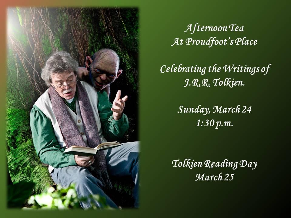 Il Tokien Reading Day, istituito nel 2003 dalla Tolkien Society inglese, è uno degli eventi tolkieniani più attesi dai fan: ci si ritrova tra amici, magari di fronte ad una tavola imbandita in stile Hobbit, per leggere assieme brani tratti dalle opere del Professore. Questa ricorrenza cade ogni anno il 25 marzo, data della distruzione dell’Unico Anello nel Signore degli Anelli.
