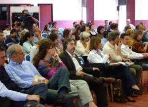 Dopo una breve sosta per il pranzo (breve in senso hobbit) c’è stato quello che in molti consideravano il momento clou della giornata: il dibattito fra Andrea Monda e Wu Ming 4 su “Tolkien pensatore cattolico?”. Superato lo stupore per aver finalmente dato una faccia a uno dei Wu Ming (no, non pubblicheremo la sua foto, anche perché è venuta mossa; vi basti sapere che c’è chi l’ha paragonato nell’aspetto a Caravaggio), siamo rimasti molto colpiti dalla preparazione e dalla passione che entrambi i dibattenti hanno dimostrato; quella di Andrea è stata da alcuni spettatori considerata come la sua migliore presentazione di sempre; Wu Ming 4 è stato, soprattutto per i molti che non l’avevano mai sentito, una vera rivelazione. Peccato solo che i due “contendenti” non abbiano poi conteso così tanto, trovandosi invece spesso e su molti punti in accordo. Noi che c’eravamo, e che abbiamo seguito le fasi di preparazione dell’incontro, possiamo però confermare che non c’è stata nessuna combine: l’incontro è valido (risultato: sostanzialmente un pareggio).