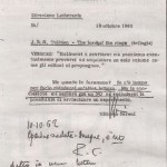 A Vittorini risponde Vittorio Sereni, con un parere ancor più negativo: “Se c’è tempo per farlo chiederei un’altra lettura. Ma la conclusione mi sembra già un NO ed escluderei la possibilità di arrischiare un esperimento”. La questione si chiude con una nota di R. C., che scrive: “Opzione scaduta. Dunque, è no”, e con un’altra nota (dalla sigla illeggibile) che recita: “Detto in una lettera all’editore”.