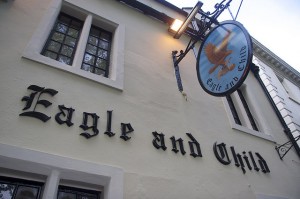 Per ultimo, ma non da meno, viene il pub The Eagle and Child, dove ogni settimana si riuniva il gruppo degli Inklings guidato da J.R.R. Tolkien, C.S. Lewis, Charles Williams e Owen Barfield. E in questo caso più che di luogo si potrebbe parlare di porta d’accesso unica, col suo aroma di alcool e tabacchi, verso i più incredibili mondi dell’immaginazione del ‘900. Secondo Stephanie Yoder di BootsnAll, non solo questo è un bel posto per rilassarsi con una birra fresca, ma è anche la sede migliore per la creatività. Gli Inklings si incontravano qui una volta alla settimana per bere e soprattutto per confrontarsi sui loro lavori. Ed è qui che furono letti alcuni capitoli di libri oggi famosi come Le cronache di Narnia di Lewis e Lo Hobbit e Il Signore degli Anelli di Tolkien.