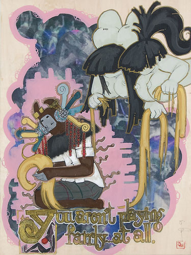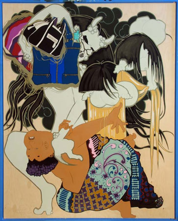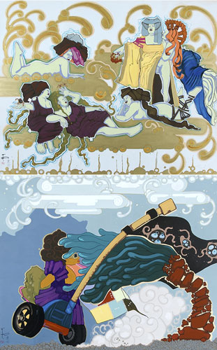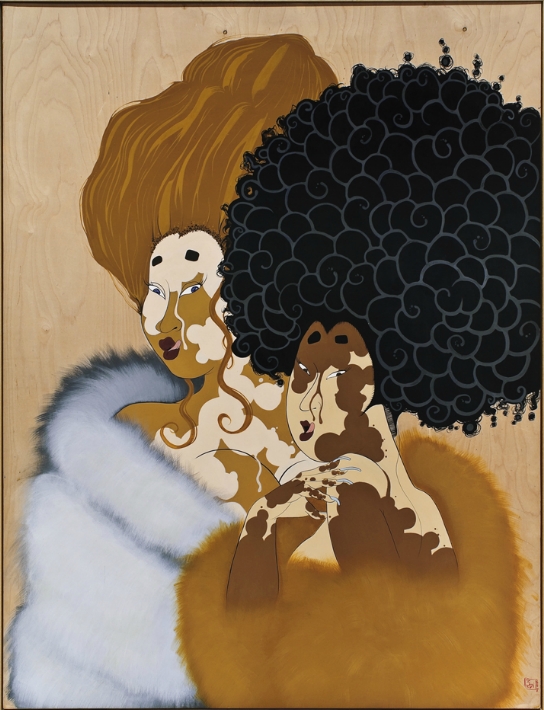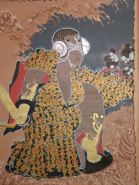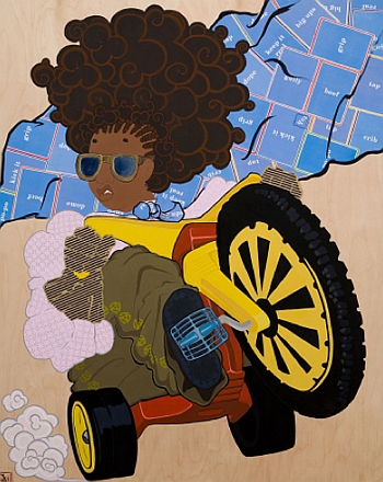 Iona Rozeal Brown è stata inserita tra le migliori dieci artiste emergenti del 2011, dopo due esposizioni di successo a Cleveland e New York e uno spettacolo teatrale che mirava a vivificare i suoi quadri. Nata nel 1966 a Washington, l’artista vive a New York ed è considerata da molti esperti un astro nascente in quella che viene chiamata la nuova ondata di artisti di colore (insieme a Rashid Johnson, Mickalene Thomas e alla lunga eredità dello scomparso Romare Bearden) nell’arte contemporanea, il ritorno dopo molti anni della componente “Af-Am” (afro-americana) della società Usa. Dal novembre scorso, inoltre, i suoi dipinti hanno raddoppiato le quotazioni e si possono acquistare online in molte gallerie della Grande Mela. Articoli molto lusinghieri su di lei sono apparsi sul New York Times e Washington Post. Ma il successo più grande è giunto proprio durante la quarta edizione di Performa, la biennale sulle performance di arte visiva che si è svolta a New York dal primo a 21 novembre. La Brown vi ha presentato la sua prima performance teatrale “Battle of Yestermore”, che rappresenta tutta la sua complessa mitologia con cui si esaminano le pressioni sociali e gli ostacoli che devono superare le giovani donne di oggi. È l’emanazione diretta dei suoi dipinti,