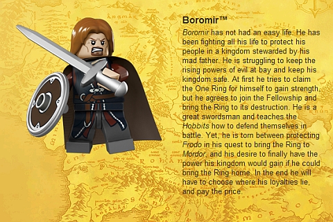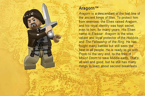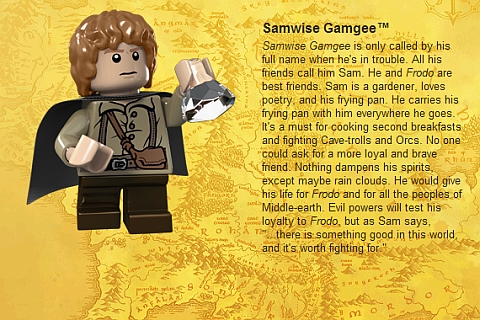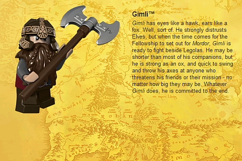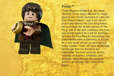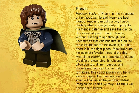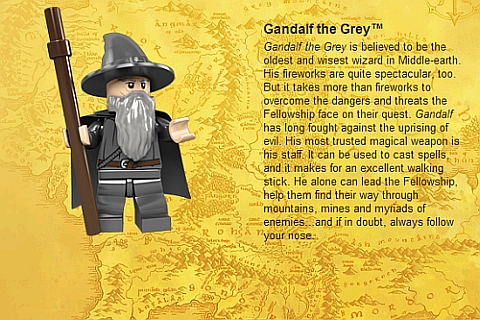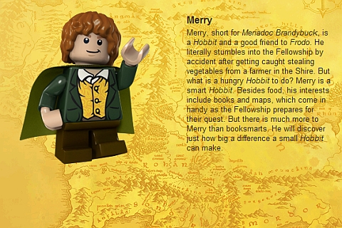 La cosa più interessante nelle immagini di presentazione dei personaggi Lego è vedere che tutti i nomi sono marchi registrati, tranne Legolas, Merry e Pippin.