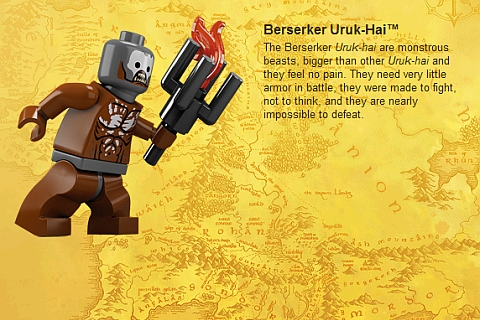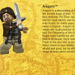 La frase incisa sull’Unico Anello sarà presto sulla bocca di tutti gli appassionati dei mattoncini Lego. Come avevamo già annunciato qui, da giugno 2012 la Lego rilascerà negli Stati Uniti una serie di set ispirati al Signore degli Anelli. Dopo i primi poster promozionali, sono state recentemente diffuse le schede di ben 19 personaggi e 7 scenari ricostruiti con i mattoncini danesi. Poi, in concomitanza con l’uscita al cinema di Lo Hobbit: un viaggio inaspettato, la cui premiere è prevista per il 14 dicembre 2012, arriveranno le serie dedicate alle avventure di Bilbo Baggins, ovviamente con lo stesso titolo. Inoltre, per febbraio 2013 sono attesi altri set aggiuntivi. Sul sito dalla Lego espressamente dedicato, si possono vedere tutti i personaggi nei minimi particolari. Si tratta di 13 personaggi “buoni”: Frodo, Sam, Merry, Pipino, Gandalf, Aragorn, Legolas, Gimli, Boromir, Re Théoden, Èomer, Haldir e un soldato di Rohan. Solo 6 i personaggi “cattivi” (non del tutto riusciti, a dir la verità): Gollum, uno dei Nazgûl, un Orco di Mordor, un Uruk-hai, un “Berserk” Uruk-hai e Lurtz, personaggio, mai apparso nei libri, ma che nei film di Jackson è a capo di una banda di Uruk-hai. I sette set della serie sono: