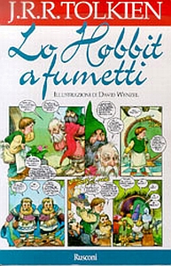 Lo Hobbit a fumetti è considerato da molti come uno degli adattamenti più riusciti e di maggior successo di un classico della letteratura per ragazzi. Sceneggiato in tre parti da Chuck Dixon e Sean Deming e illustrato appunto da Wenzel, fu pubblicato nel 1989 dalla Eclipse Comics. Nel 1990 la Unwin Paperbacks pubblicò un’edizione in volume unico. La prima copertina fu ad opera dallo stesso Wenzel mentre, a partire dalla ristampa dell’edizione in volume unico pubblicata da Del Rey Books nel 2001, una copertina è stata illustrata da Donato Giancola (di lui abbiamo parlato qui), che ha ottenuto l’anno successivo il Premio per la migliore illustrazione di copertina dalla Association of Science Fiction Artists. In Italia, il volume unico venne pubblicato dall’editrice Rusconi nel 1997 e fu ristampato nel 2000, quando la pubblicazione delle opere di Tolkien passò alla Bompiani. Come citato in fondo al libro: «Lo stile di Wenzel unisce al tratteggio classico le tecniche di acquerello e la narrazione grafica». La narrazione e l’adattamento a fumetti seguono fedelmente l’originale. Oltre ai dialoghi tra i personaggi, ampie parti del volume presentano grandi illustrazioni con didascalie, che riassumono molte parti del libro. Proprio alla manifestazione di Worcester, Wenzel ha rivelato di aver appena completato una nuova edizione del suo lavoro ormai classico, che sarà pubblicato in
