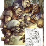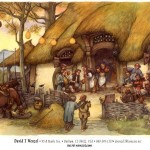 con Smaug” che mostrano perfettamente l’amore e il rispetto dell’artista per il testo originale e il suo debito verso le influenze ammesse Arthur Rackham, Edmund Dulac, Howard Pyle, Alphonse Mucha, Barry Windsor-Smith e Frank Frazetta (di lui abbiamo parlato qui), nonché i pittori olandesi Pieter Bruegel e Jan Steen.