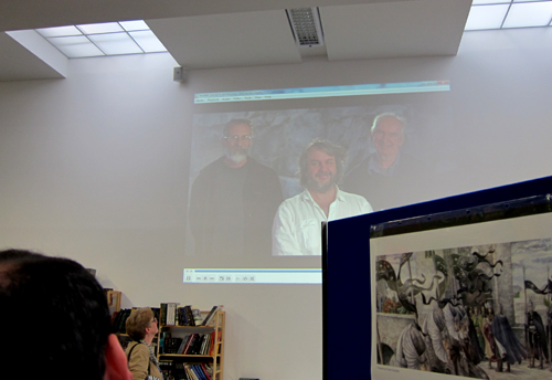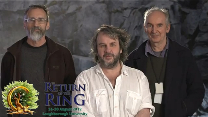 messaggio video di Peter Jackson, John Howe e Alan Lee, proiettato su un muro e accolto con entusiasmo (vedi sotto).