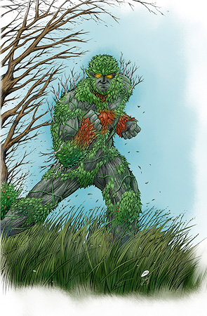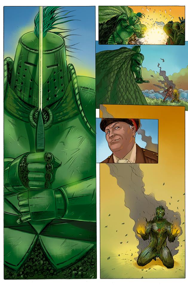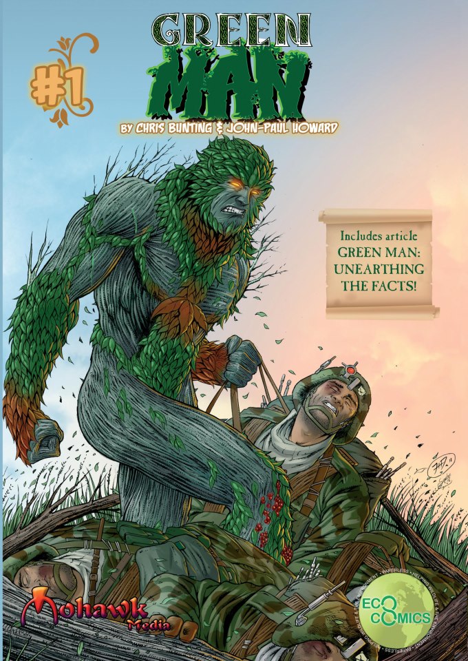 Il personaggio farà il suo debutto a fumetti nella serie di altro personaggio leggendario della casa editrice, il Green Man (“Uomo Verde”), figura archetipica raffigurata in Inghilterra nei capitelli, le volte o le basi delle colonne di molte chiese, soprattutto di epoca medievale: una creatura circondata da foglie che spuntano da naso, bocca e occhi, altre volte sostituiscono i capelli. L’autore dei testi è Chris Bunting, già all’opera come moltissime delle storie della casa edtrice, mentre i disegni sono a cura di John-Paul Howard, autore relativamente nuovo sulla scena di fumetti: Green Man è stata la sua prima esperienza con i personaggi leggendari. Ma, a ben guardare e nonostante il comicato stampa, Tolkien c’entra veramente poco. «Il mio Cavaliere Verde è una libera rielaborazione in puro stile a fumetti», spiega Bunting. «È un cavaliere verde gigantesco e potente, sembra completamente folle. È la spalla ideale per l’Uomo Verde». Rimane una qualche associazione con Re Artù e i cavalieri della Tavola Rotonda? «Beh, per scoprilo i lettori dovranno continuare a leggere le storie». E il legame con Tolkien? «Aspettatevi un personaggio dal forte impatto visivo. Il mio Cavaliere Verde è però rispettoso della sua origine e dello scopo a cui era originariamente destinato.