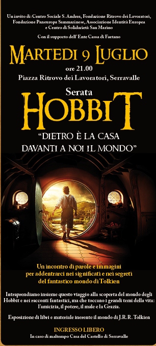 Anche San Marino rende omaggio a J.R.R. Tolkien. Lo fa con una serata tutta dedicata all’autore del Signore degli Anelli e dello Hobbit. L’occasione viene dalla diciassettesima edizione di Olnano Estate 2013, l’evento estivo promosso dal centro sociale S. Andrea, dalla fondazione ritrovo dei lavoratori di Serravalle e dalla giunta di Castello di Serravalle. Proprio il castello dei Malatesta ospita la manifestazione, che unisce l’opportunità di dar vita al centro storico accogliendo i turisti che vengono della riviera adriatica e la volontà di fare cultura.