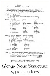 Così, tra meno di un mese potremo finalmente sapere tutto (o quasi) sulla declinazione nominale del Quenya nel III e IV periodi in cui Tolkien se ne è occupato (gli altri due periodi sono appena stati pubblicati).. Si tratta di Oltre 100 pagine inedite di Tolkien sul linguaggio Quenya, da non perdere.