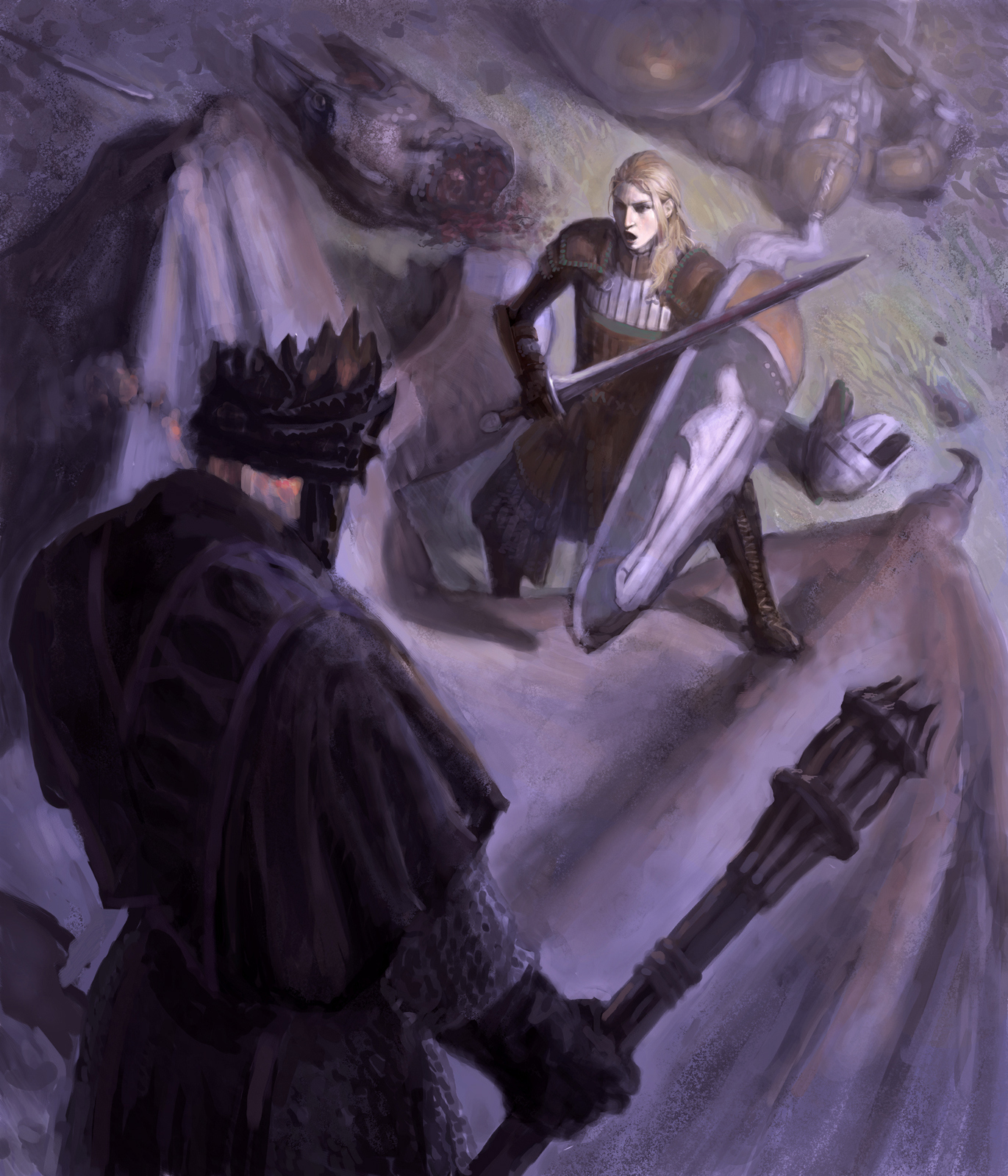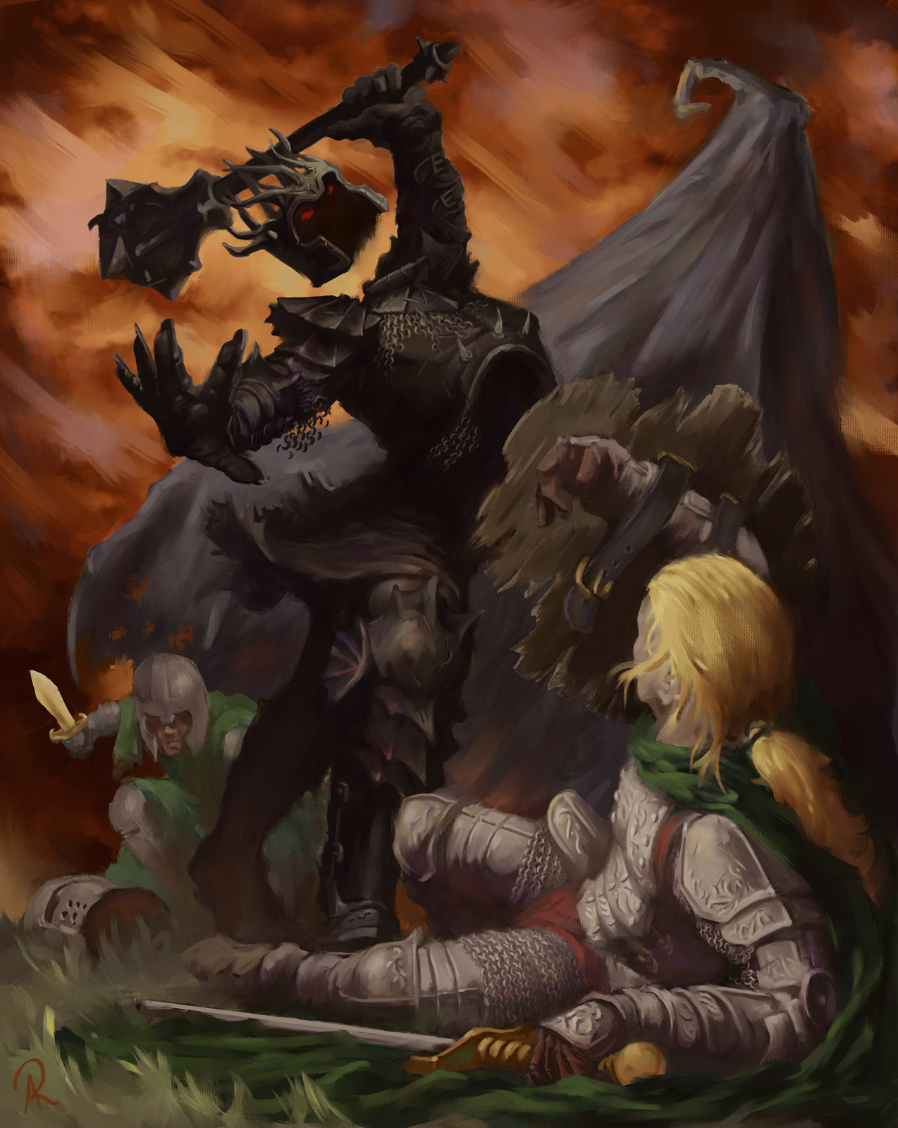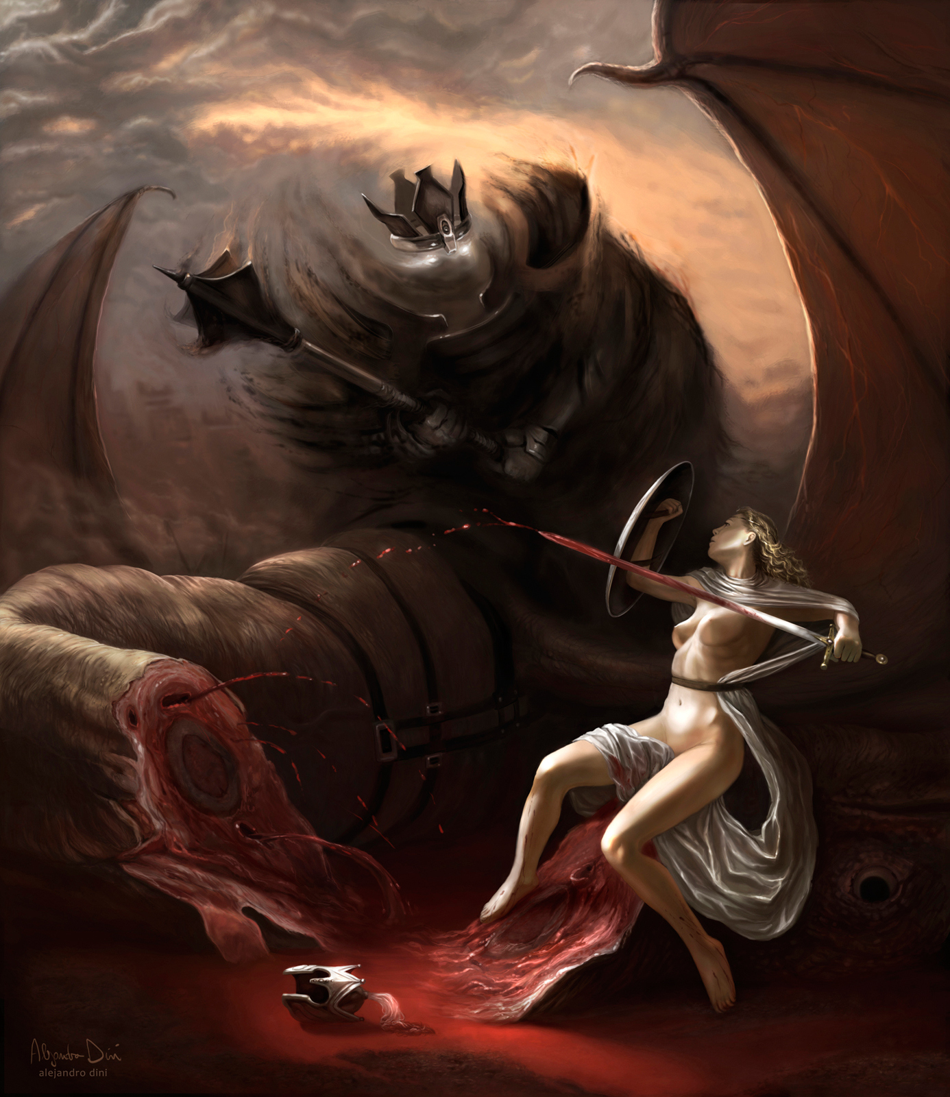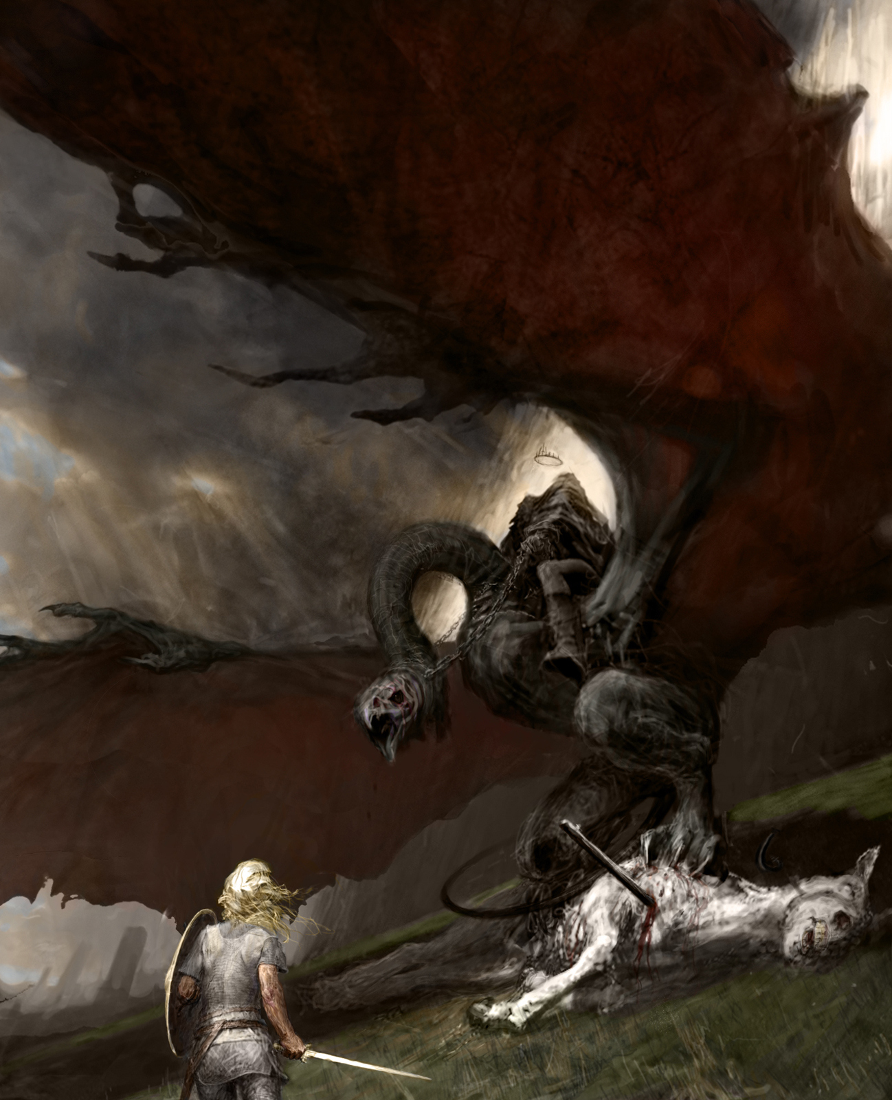 È un voto in onore dei gdr e in rappresentanza anche di altre tre immagini (Yanovskaya, Stanley e soprattutto Schwager). Soprattutto i colori e l’omogeneità di tutta la scena mi ricordano le migliaia di illustrazioni di Merp. Inoltre, al contrario di molti altri illustratori, questo non sbaglia nel disegnare la creatura… 🙂