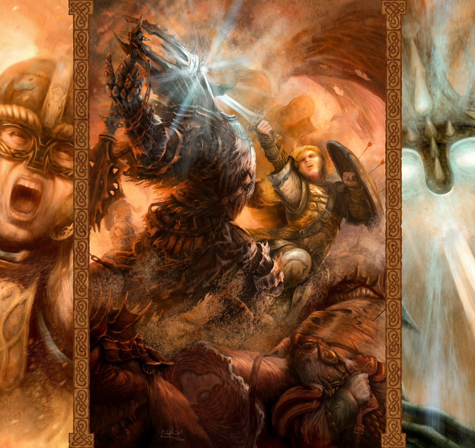 Ma farei una menizone speciale per Allen Douglas e il suo stile “manierista”, soprattutto nella posa di Eowyn, con sguardo “in scorcio”sull braccio che impugna la spada.