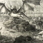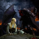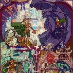 Devo dire che quest’ultima settimana è stata la più difficile dal punto di vista della scelta. Le illustrazioni erano di mirabile fattura e molte anche particolari per la diversa visione data a questo epico scontro. Tutti, chi più chi meno, siamo stati piacevolmente sorpresi dal lavoro di Jian Guo. Chi ha avuto la fortuna di visitare il suo sito, ha potuto apprezzare anche i suoi lavori precedenti. È un illustratore capace e con una bella tecnica che è riuscito ad attrarre l’attenzione su di sé prendendo una decisione azzardata: cambiare completamente tecnica e rifarsi alle antiche vetrate delle chiese, che avevano il compito di raccontare una storia non solo quello di frammentare e duplicare la luce che vi entrava. Ma bisogna fare i complimenti anche a tutti gli altri illustratori che hanno saputo attirare