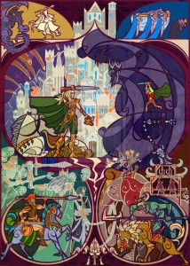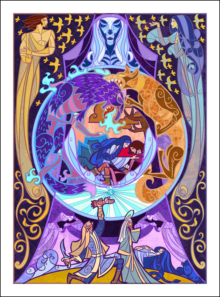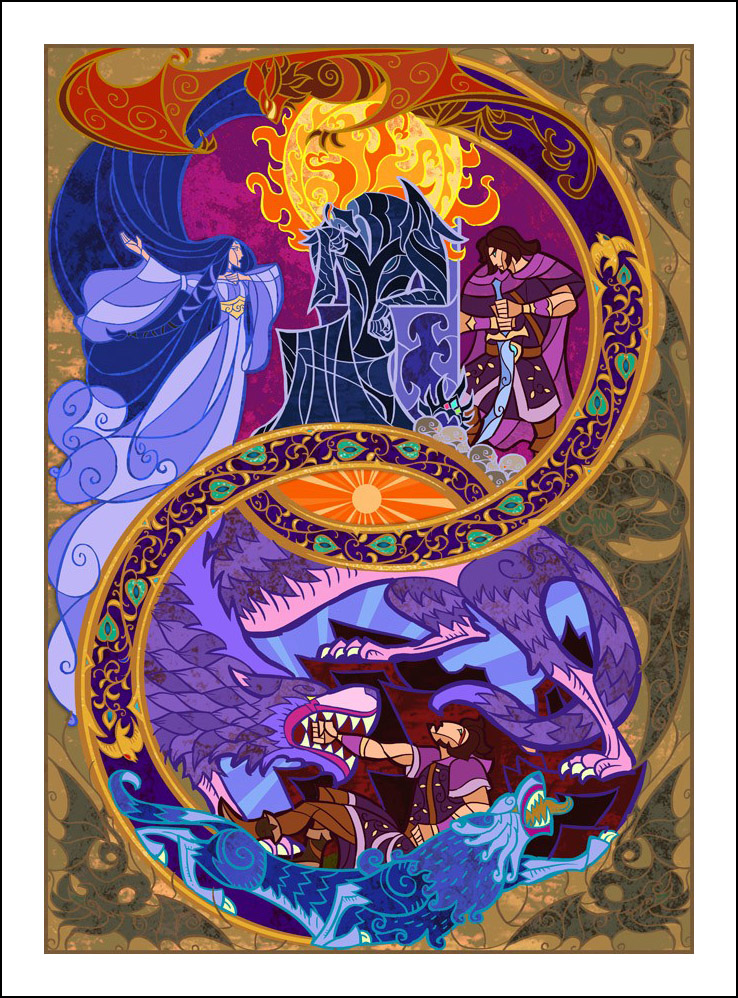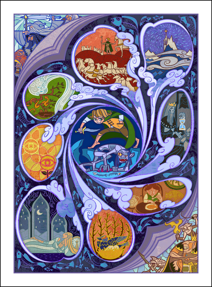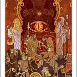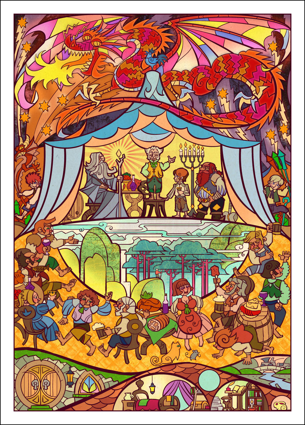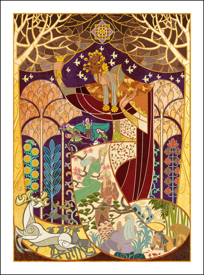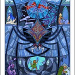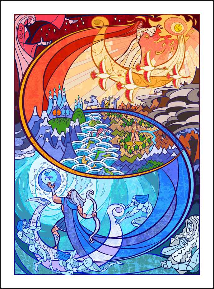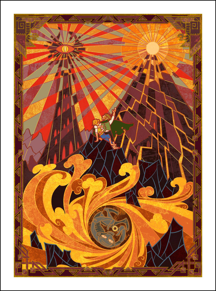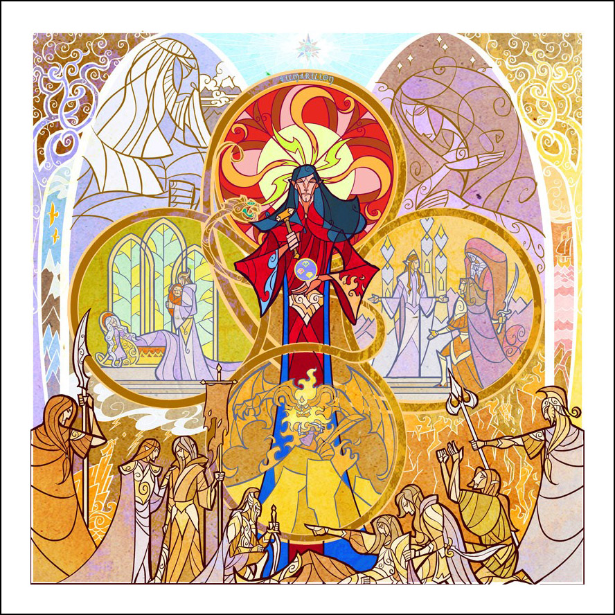 faceva l’illustratore. Sin dall’inizio è stato impressionato ed incuriosito dalla tecnica della pittura e costruzione delle vetrate. L’incontro con le storie di J.R.R. Tolkien è avvenuto con la visione della trilogia cinematografica di Peter Jackson dedicata al Signore degli Anelli. Dopo aver visto i film, Guo a iniziato a leggere il capolavoro dello scrittore ingelse, per poi passare allo Hobbit, ma ammette che solo dopo diverse riletture è riuscito veramente ad approfondire la conoscenza della Terra di Mezzo. Ora ogni due anni legge i libri di Tolkien senza riuscire a staccarsi nemmeno per dormire! Perché illustrare la Terra di Mezzo utilizzando le vetrate? Tradizionalmente, le vetrate sono destinate a immortalare le grandi gesta e gli atti eroici, per non parlare dell’alone di magia e misticismo che le circonda. Grazie alla sua conoscenza della pittura su vetro, Guo è riuscito a dare un senso di sacralità alle storie, riuscendo a trasporre un intero capitolo dei libri in un’unica illustrazione. Ed è proprio la tecnica di raffigurazione, che sarebbe perfetta per essere riprodotta su un vetro reale, a creare l’armonia delle linee e dei colori rendendole decisamente affascinanti. Sebbene l’artista cinese sia attivo e pubblichi le sue illustrazioni fin dal 2011, ha ottenuto una certa notorietà solo dopo che sono state pubblicizzate sul sito web dell’Huffington Post nel settembre 2012. Godiamoci le sue immagini che, se guardate attentamente, rivelano un’ispirazione ai film di Peter Jackson. Buona visione!