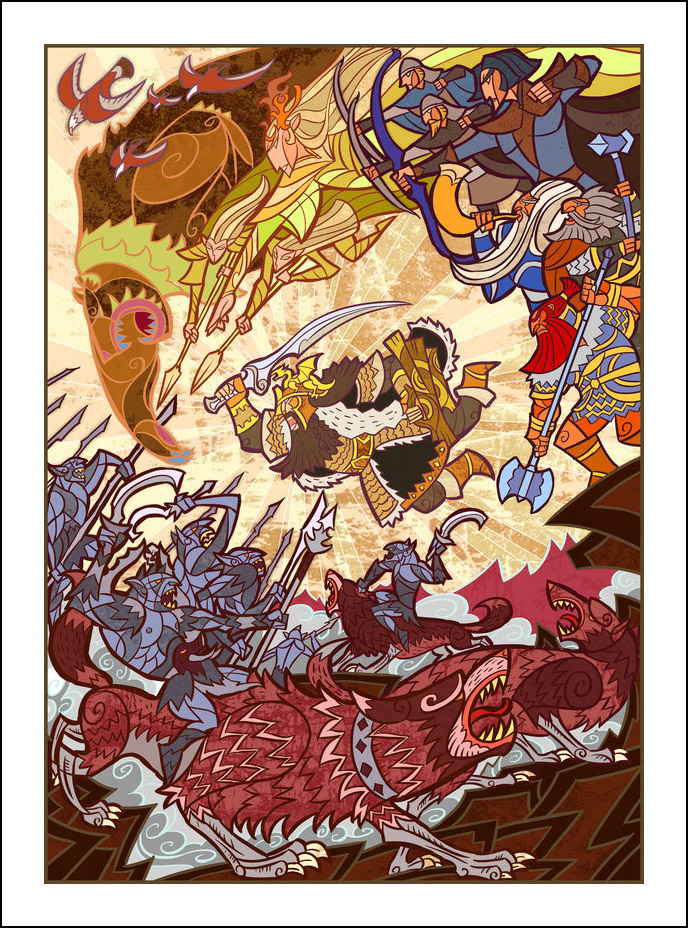 L’ultima settimana è passata. I voti sono stati contati. Sono state tirate le somme. Ma non crediate che vi dica subito il nome del vincitore del nostro primo Ar(s)T Contest. No… sarebbe troppo facile. Un po’ come nella notte degli Oscar, senza voler fare minimamente paragoni, bisogna cercare di fare dello spettacolo prima di dire il vincitore. Sono state delle settimane dense di sorprese quelle delle eliminatorie. Abbiamo conosciuto illustratori nuovi e abbiamo incontrato qualche vecchia conoscenza. Per scegliere l’unico vincitore, noi lettori ci siamo calati nella parte del critico d’arte, alcuni di noi dando sfoggio di vere competenze artistiche, altri lasciandosi trasportare dall’istinto (come la sottoscritta, d’altronde). La particolarità di tutte le illustrazioni viste è stata, forse, proprio la loro diversità sia di tecnica che di stile. Alcune erano molto “moderne” anche se si parlava di illustrare uno scontro epico, altre invece facevano leva sul lato psicologico dello scontro. I toni cupi dei colori fermavano il momento della battaglia. Guardandoli si poteva avvertirne la tensione. Credo che Tolkien sarebbe stato più che soddisfatto nel vedere quanti artisti si sono cimentati, con ottimi risultati, nel riportare tutta «l’emozione» di quel piccolo pezzo di storia che cambierà il destino della sua Terra di Mezzo.
