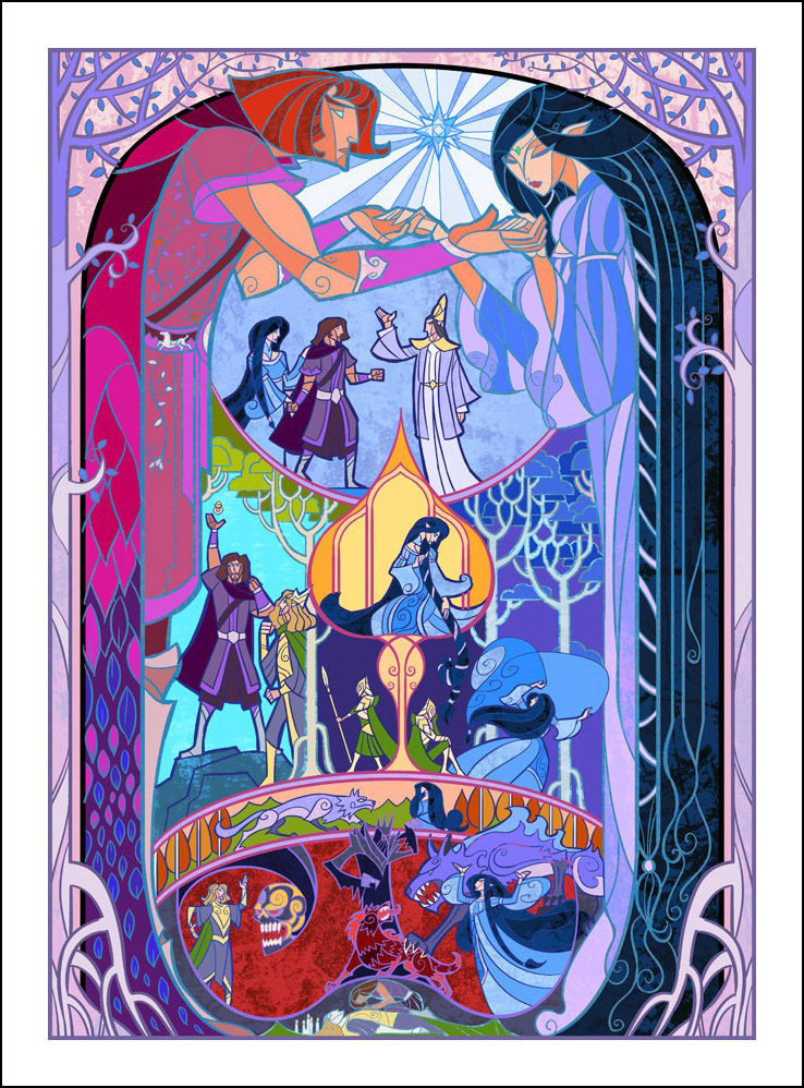 Come raccontare una storia con delle semplici immagini. Questa è la tecnica di Jian Guo. Così, contro tutti i pronostici, la sua arte innovativa ha vinto la gara. La sua particolarità nell’illustrare il mondo di Tolkien con la tecnica delle vetrate ha colpito i cuori di noi tutti. Jian Guo è un’artista della Repubblica Cinese. Come scritto nella sua biografia, appena laureato ha cominciato a lavorare come architetto e designer, mentre nel tempo libero