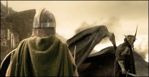 TERZO POSTO: Oliver Meinerding con i capelli di Eowyn illuminati dal sole e le bandiere sullo sfondo ghermite dal vento… l’ apoteosi!