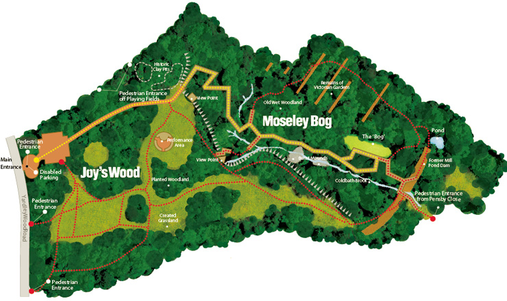 I fondi per il progetto sono stati stanziati da Biffa Award, un fondo ambientale multimilionario (in sterline) gestito dalla Royal Society of Wildlife Trusts (RSWT), che utilizza i crediti d’imposta donati dalla società di raccolta e smaltimento rifiuti Biffa Waste Services. È previsto il coinvolgimento di volontari sia nella creazione di percorsi per i visitatori, da realizzarsi nella nuova area per mezzo di materiali naturali, sia in lavori di conservazione che porteranno questa poco amata e ignorata parte del sito agli stessi livelli del resto della riserva. «Siamo felici di esser riusciti ad assicurare i fondi necessari per quest’opera che farà una grande differenza per gli utenti del sito», ha detto Jack Wilson, responsabile del Wildlife Trust for Birmingham and the Black Country, «abbiamo già reso facilmente accessibile gran parte di Moseley Bog e Joy’s wood senza rinunciare alla loro unicità, e includervi un’altra area speciale è un grande risultato sia per la gente sia per la fauna locale. Pensiamo sia importante che le altre aree che richiedono attenzione siano aperte anch’esse, e che i residenti che vivono attorno all’ingresso di Pensby Close si sentano anch’essi collegati alla Riserva». «Biffa Award è tesa a sostenere progetti che migliorino l’accesso alle riserve e alle aree boscose e ci incoraggino ad apprendere di più sul nostro ambiente naturale», ha spiegato Gillian French, responsabile del Biffa Award, «questo progetto fa entrambe le cose e i miglioramenti faranno sì che più persone possano godere dei percorsi naturali in tutto l’arco dell’anno».
