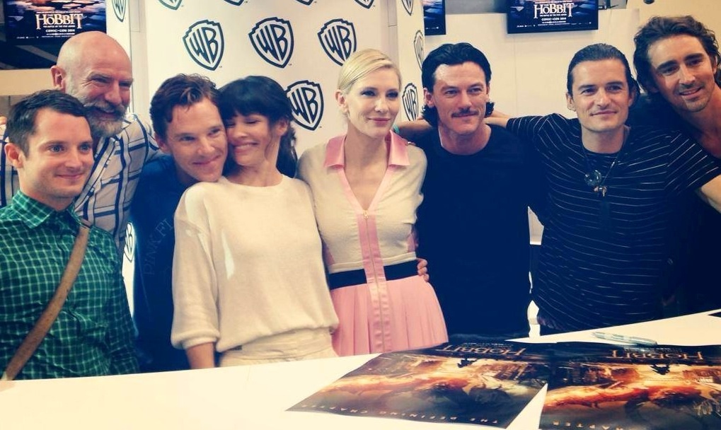 Sul set: Hugo Weaving, Orlando Bloom, Christopher Lee, Cate Blanchett, Luke Evans, Ian Mckellen, Martin Freeman, Richard Armitage, Evangeline Lilly, Sylvester McCoy,Lee Pace, Benedict Cumberbatc e Mikael Persbrandt.