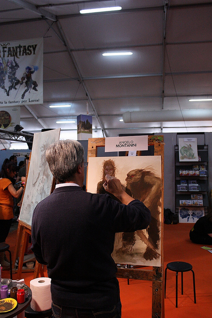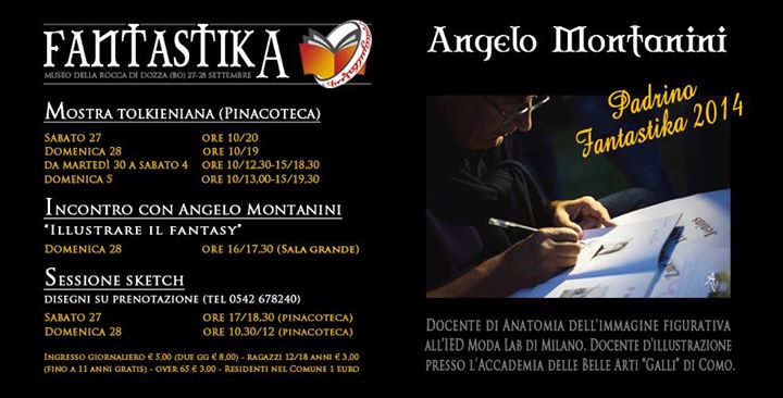 Questo ci dà lo spunto per parlare del pezzo forte della manifestazione, che riguarderà soprattutto l’omaggio a Tolkien. L’Associazione romana studi Tolkieniani si è mobilitata in forze perché ha la direzione artistica di ben due mostre e terrà due conferenze di tutto rispetto. Una mostra personale sarà dedicata a Ivan Cavini, Il Viaggio Inaspettato, per illustrare tutta la sua produzione dedicata al professore di Oxford. Si potranno così ammirare le diverse tecniche con cui l’artista ha saputo rappresentare la Terra di Mezzo, che è un po’ il suo «marchio di fabbrica». È intitolata invece Sulla Soglia – Illustratori italiani nella Terra di Mezzo, l’esposizione dedicata a 5 artisti che hanno dedicato la loro arte allo scrittore inglese. Un omaggio e riconoscimento sarà tutto per Angelo Montanini, «padrino di Fantastika 2014», docente di anatomia dell’immagine figurativa presso lo Ied moda Lab di Milano e docente d’illustrazione all’Accademia delle Belle Arti “Galli” di Como. Ma per gli appassionati di Tolkien, Montanini è la storia dell’illustrazione fantastica, avendo annoverato collaborazioni con case editrici come Rusconi, Mondadori, Longanesi, Editrice Nord e la Società Tolkieniana Italiana (per cui ha realizzato diversi calendari), mentre per quanto riguarda l’estero è universalmente noto per la pubblicazione del gioco di carte del Signore degli Anelli edito dalla I.C.E. nel 1986 e per il quale Montanini ha realizzato tantissime tavole (il suo Unico Anello è stata la carta più famosa dell’intero gioco).