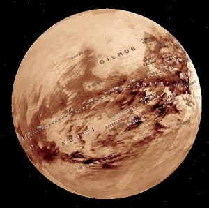 Titano, la maggiore fra le lune di Saturno, è molto simile a un pianeta: ha un clima stagionale che provoca caratteristiche della superficie simili a quelle della Terra, compresi laghi, fiumi e, naturalmente, montagne. Forse proprio perché è così simile alla Terra, gli astronomi hanno deciso di realizzare le nostre fantasie dando a molte emergenze di Titano nomi di esseri mitologici e fantastici: i crateri hanno nomi di dee della saggezza, i labirinti hanno il nome dei pianeti di Dune. Ma soprattutto, le catene montuose hanno i nomi delle catene montuose della Terra di Mezzo, seguendo una convenzione del Gruppo di Lavoro per il Sistema di Nomenclatura Planetaria dell’IAU. Gli esempi più notevoli sono il monte Erebor, le Montagne Nebbiose, i Monti Mithrim, i monti Mindolluin e, naturalmente, il Monte Fato, appropriatamente quello che si ritiene essere il picco più alto di tutta la luna.