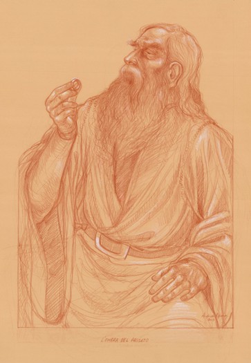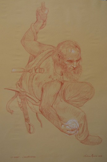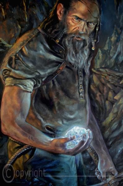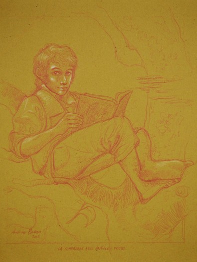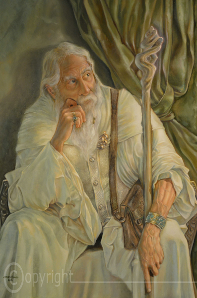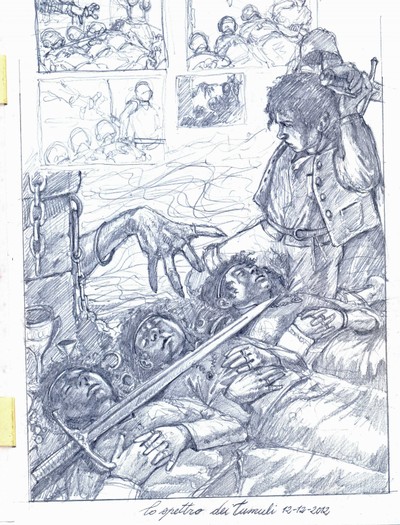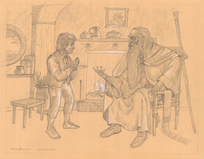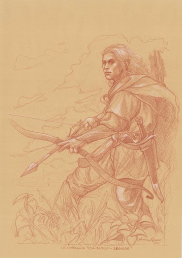 La mia visione è sempre stata così personale da distaccarsi volutamente dai film, ricercando nell’immaginario la rappresentazione quanto più fedele delle descrizioni di Tolkien. Ho sempre amato i grandi pittori del classicismo ai quali mi sono rivolto per lo studio dell’anatomia, della composizione e degli effetti della luce. Di grande aiuto è anche il silenzioso insegnamento dei maggiori illustratori contemporanei e non, il cui lavoro mi ha spinto in passato verso la tecnica ad olio, pur avendo avuto una formazione artistica tecnicamente varia. Ma l’amore per il disegno a matita non ha mai smesso di accompagnarmi, anzi si è arricchito con l’uso della sanguigna e matita bianca sulla carta da spolvero, combinazione a mio avviso capace di dare maggiore tridimensionalità e “calore” al disegno».