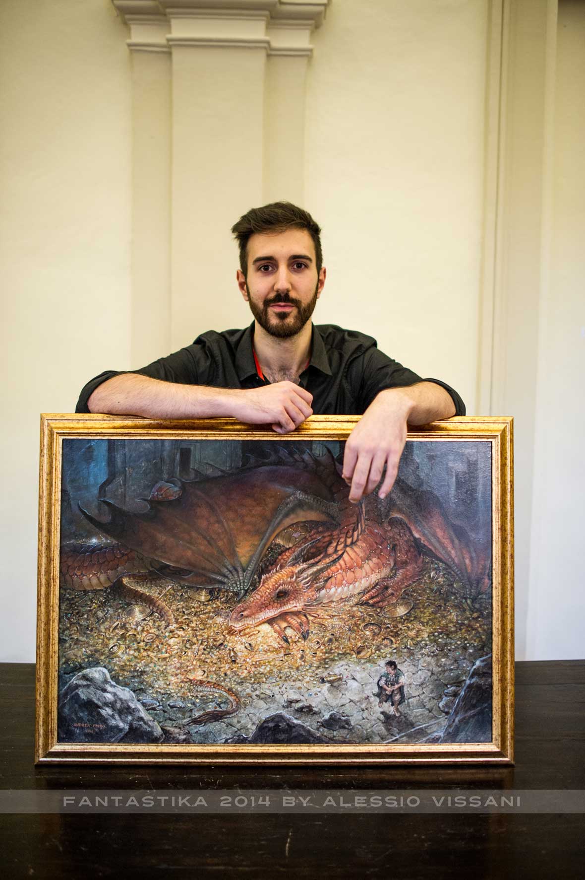Così abbiamo chiesto a un giovane artista, Andrea Piparo, di partecipare. Durante tutta la giornata l’artista mostrerà le sue opere si dedicherà alle sessioni di sketch. Nato a Roma nel 1990, si diploma al liceo artistico di via Ripetta e prosegue gli studi frequentando il corso di illustrazione presso la Scuola Internazionale di Comics. Ha esposto le proprie opere in varie collettive, prodotto diversi ritratti su committenza, è ha esposto in diverse mostre, tra cui nel maggio 2014 a Roma con Oltre gli orizzonti, e a settembre durante Fantastika a Dozza (Bologna) (si può leggere il resoconto qui). La sua produzione spazia dalla ritrattistica allo still life, ma la passione per il genere Fantasy lo indirizza prevalentemente verso tale espressione artistica, nella quale manifesta la sua attenzione ai dettagli, coniugata all’amore per la pittura realista e il disegno a matita.