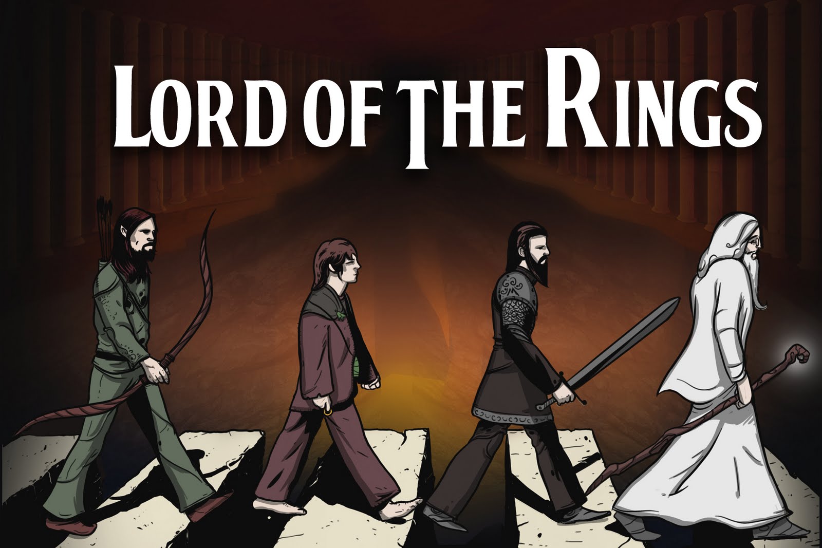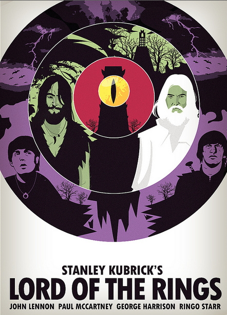 I Beatles erano dei lettori appassionati di Tolkien e avrebbero voluto fare il loro adattamento del Signore degli Anelli. Tutto accadde tra il 1967 e il 1968, quando la band era all’ apice del successo. John Lennon iniziò a scrivere una bozza per quello che sperava sarebbe stato il quinto film dei Beatles dopo A Hard Day’s Night, Help!, Magical Mystery Tour e Yellow Submarine. Il piano di Lennon era piazzare ogni membro della band nell’esatto ruolo in cui chiunque lo avrebbe piazzato: Paul McCartney sarebbe stato Frodo, George Harrison Gandalf, Ringo Starr Sam e John Lennon a imperversare nella parte di Gollum anche se, secondo il libro Fab: An Intimate Life of Paul McCartney di Howard Sounes, John voleva tenere per sé la parte di Gandalf. Sembra anche che la nota modella Twiggy avrebbe impersonato Galadriel. Come tutti i migliori progetti dalla natura vana sarebbe poi stato una cosa in grande: dapprima i produttori contattarono David Lean, il quale però era troppo indaffarato con altre pellicole, poi Stanley Kubrick. Il regista disse con sincerità che non aveva letto il libro, per cui Dennis O’ Dell, numero uno di Apple la casa discografica della band, gliene spedì diverse copie. Alla fine, però, Kubrick rifiutò l’offerta perché il romanzo era troppo «vasto» per essere adattato in un film: «Chiedete piuttosto ad Michelangelo Antonioni». Apple Film , intanto, nel 1969 aveva effettuato passi presso Tolkien per comprare i diritti sulla trama. La sua risposta non è attestata, ma sembra che lo scrittore fosse contrario e non se ne fece più nulla. Intervistato sull’argomento, McCartney ritiene che il fallimento del progetto fu probabilmente una buona cosa, perché avrebbe fatto mettere tutti i riflettori su Lennon, che voleva il ruolo più appariscente, e questo potenzialmente avrebbe irritato gli altri Beatles: «La forza degli altri film che abbiamo fatto è proprio che in essi siamo tutti uguali».