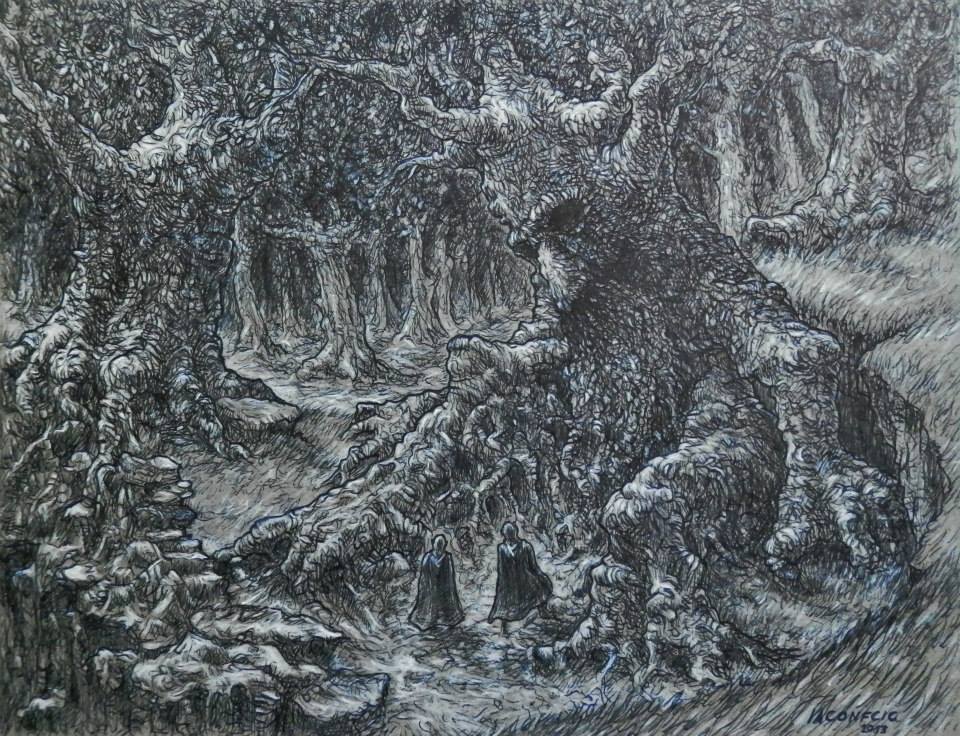 Una sezione a parte è dedicata agli artisti contemporanei: saranno esposte le opere di autori come Jef Murray, Ruth Lacon, Stefano Baldo, Diego Iaconfcic (che esporrà un suo Ent, come si può vedere qui a fianco). Dopo il successo della mostra a FantastikA 2014, richiesti a gran voce praticamente tutti gli artisti presenti a Dozza nel settembre scorso: oltre a Montanini e a Maria Distefano, un cui quadro giungerà direttamente dalla collezione del Greisinger Museum, saranno presenti almeno due opere di Ivan Cavini (la maquette di Barbalbero e la matita Gandalf e il Balrog) e i due esordienti rivelazione della mostra curata dall’Associazione italiana studi Tolkieniani: Fabio Leone, che esporrà l’opera Ulmo appears before Tuor e Andrea Piparo, socio della nostra Associazione, con le due opere Lo Spettro dei Tumuli e Il Flagello di Isildur. Le diverse sezioni avranno degli intermezzi: uno sarà dedicato al cinema, con 6 fotogrammi originali del lungometraggio di animazione Il Signore degli Anelli (1978) di Ralph Bakshi;