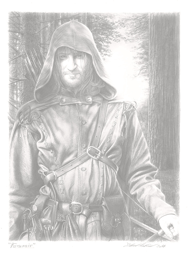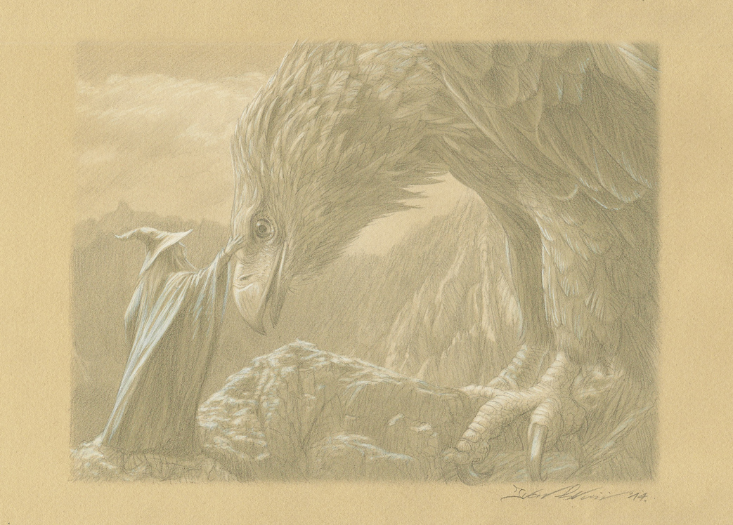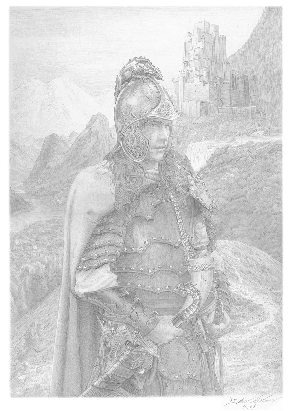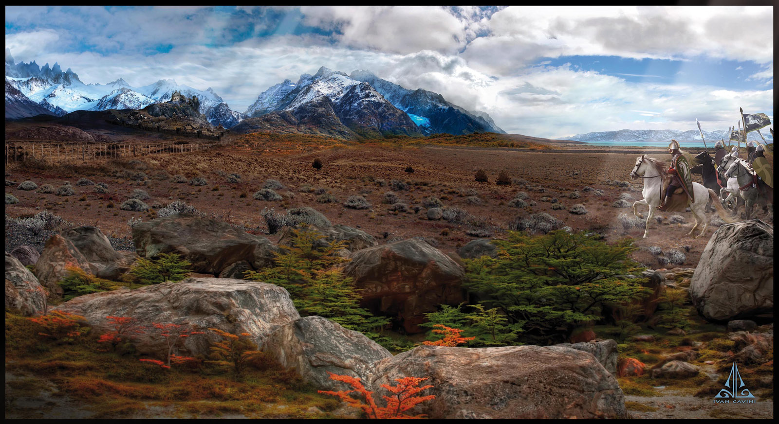 È complesso definire il lavoro di Ivan. Dalla creazione di fondali digitali alla scultura di sculture giganti (la famose bigature del Greisinger Museum), per poi passare al disegno tradizionale a matita, fino alla realizzazione di costumi di scena o addirittura l’organizzazione di eventi. Un artista poliedrico, capace di reinventarsi ogni volta, spinto dalla curiosità e dalla voglia di sperimentare. «Sono un cavallo sciolto – ci dice -, che non vuole essere imbrigliato e chi lo ha fatto…» È un artista che ama lavorare in team, perché Ivan sceglie sempre attentamente i suoi partner. Partiamo dall’inizio: quando hai iniziato a illustrare Tolkien? «Il mio primo disegno su Tolkien è del 1999, il Destriero del cielo, commissionatomi da Paolo Paron, allora presidente della Società Tolkieniana Italiana. Nel 2000, sempre per la STI, realizzai cinque illustrazioni per la mostra sui Draghi», cioè l’esposizione d’arte tenutasi in Palazzo Bagatti Valsecchi a Milano dal 1 giugno al 2 luglio 2000, «ma di tutte questi mie opere si è persa traccia ormai!». Mentre parla, ci mostra i concept originali, le uniche cose rimaste delle illustrazioni. «Sono tutte da me progettate e realizzate in 3D, poi ridisegnate con acrilico e areografo. Si può dire forse che io sia il primo artista ad aver illustrato Tolkien con questa tecnica». Di esse, dunque, rimangono solo le prove d’autore. Cosa è accaduto in seguito? «Ho iniziato l’esperienza prima con la mostra itinerante Immagini nella Terra di Mezzo e poi dal 2006 al 2012 sono stato impegnato nella progettazione degli allestimenti scenografici del Greisinger Museum.