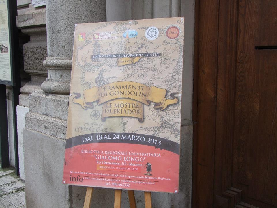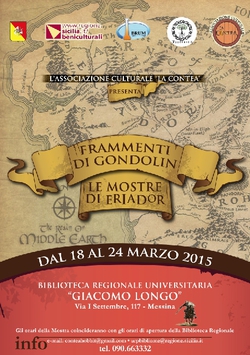 Dopo il successo della scorsa estate al Castello di Bauso viene riproposta la prima mostra tolkieniana a Messina, dedicata alle opere e agli oggetti da collezione di Tolkien. Ha il titolo di Frammenti di Gondolin ed è organizzata dall’Associazione Culturale La Contea, in collaborazione con l’Associazione Iggdrasill e sotto il patrocinio della Biblioteca Regionale Universitaria “Giacomo Longo” di Messina, il cui direttore, Sergio Todesco, ha accolto con grande entusiasmo l’idea di una mostra dedicata al Professore di Oxford e alle sue opere. L’inaugurazione della mostra si è tenuta ieri, 18 marzo 2015, presso la sede della Biblioteca, Via I Settembre 117, a Messina. Sono esposti libri di e su Tolkien, edizioni rare dei romanzi, miniature e oggetti di vario genere attinenti l’universo del Signore degli Anelli e degli altri volumi dell’epopea. Le opere rimarranno esposte fino al 24 marzo 2015. Sarà possibile visitare la Biblioteca Regionale Universitaria dal lunedì al venerdì dalle ore 9,00 alle ore 13,30 e il mercoledì dalle 15,30 alle 17,45.