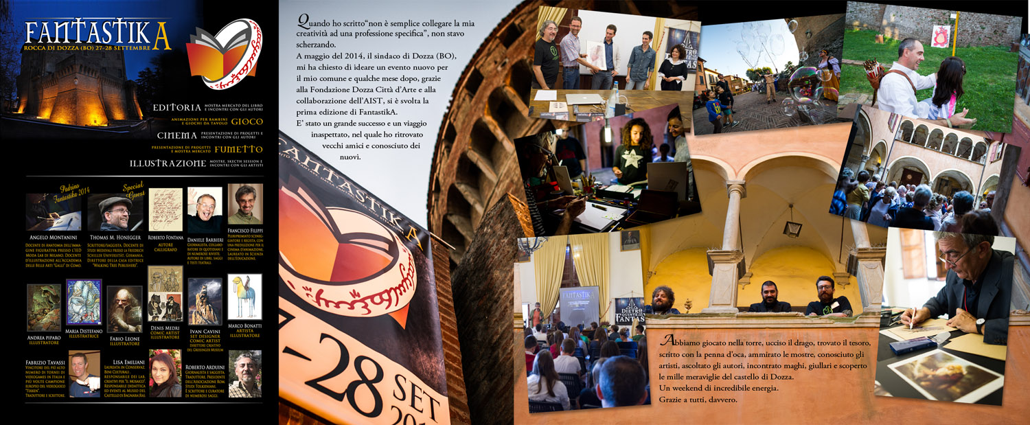 Abbiamo saputo che a Fantastika quest’anno ci sarà un personaggio famoso che conosci? Sai dirci qualcosa di lui? «Si è vero, abbiamo la fortuna di assistere allo spettacolo di Nicola Pesaresi, ventriloquo semifinalista di Italia’s got Talent, un vero e proprio portento. Con lui ci collaborò su diversi progetti che impegnano anche le mie immagini e vi assicuro che abbiamo l’onore di avere uno dei migliori ventriloqui a livello nazionale che porterà senza dubbio I suoi numerosi amici per la gioia di bambini e grandi, e perché no forse avremo anche una sopresa a livello tolkieniano, chissà… vedremo!».