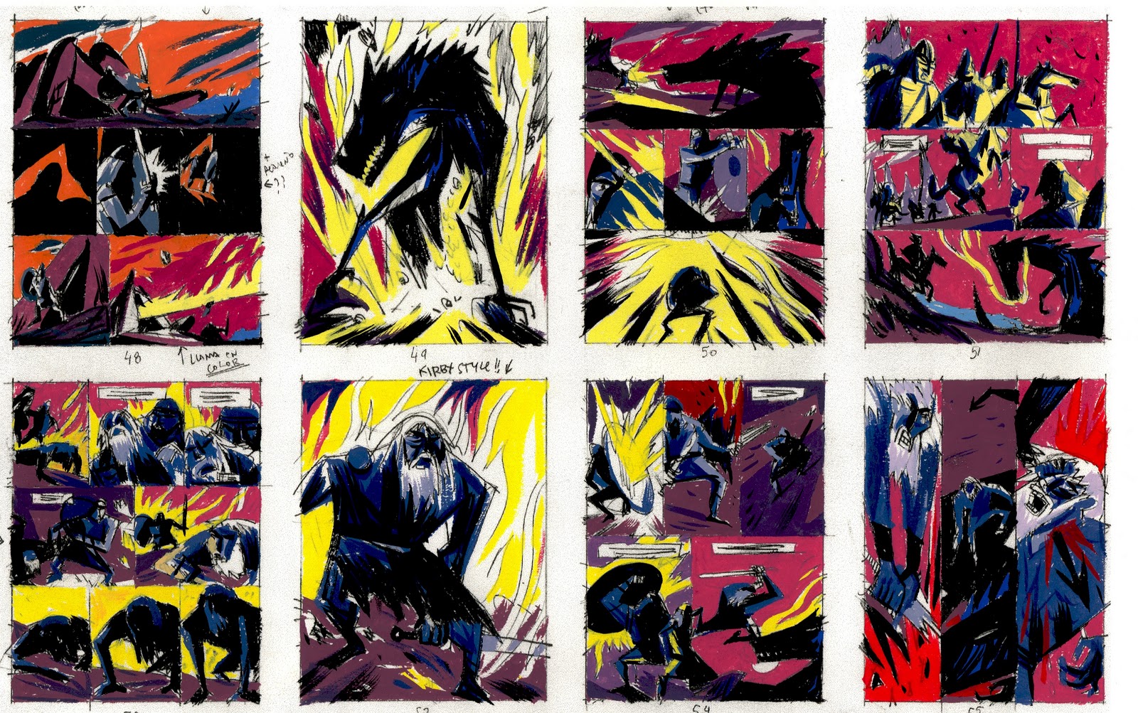 Le bozze del fumetto passano attraverso ogni fase della produzione, dai primi schizzi a matita alle prove di colore dei personaggi, dallo schizzo di ogni pagina fino alla finitura finale. «Tuttavia, lui non era ancora riuscito a fare quel fumetto e per come stanno le cose, non ho potuto terminare quel progetto. E ora sono passati dieci anni e Beowulf esiste solo in una manciata di pagine originali, molti file in un paio di hard disk e, naturalmente, nella mia testa che non ha mai smesso di girare. Insieme a Olivares, siamo giunti a una sceneggiatura completa, raccolta e scritta, un sacco di schizzi – Javier è molto accurato e produce innumerevoli note -, una bozza pagina per pagina di tutto il libro, tra cui la guida di colore e 22 pagine finite sulle 72 totali». Qui si possono vedere ben quattro esempi del progetto fallito. Proprio quel messaggio sul blog che annunciava la rinuncia al progetto è stato un nuovo inizio.