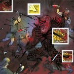 La tecnica dei piccoli riquadri per spostare l’attenzione del lettore su questo o quel dettaglio risulta assolutamente efficace e l’alternanza tra vignette orizzontali e lunghi pannelli verticali dà più ritmo alla lettura, aiutando il lettore a riflettere con Beowulf. Rubín, infine, dissemina la storia di doppie «splash page» che lasciano a bocca aperta e danno agli enormi mostri lo spazio che meritano. Si può osservare lo spettacolare lavoro fatto da Rubín in una splash page, la pagina 3 del volume, direttamente sul suo blog. La graphic novel scorre veloce, così come il sangue e le vignette. Il sangue, come detto, diviene un vero e proprio elemento narrativo oltre che cromatico. Il disegnatore spagnolo riesce a cogliere gli aspetti profondi della storia di Beowulf, rappresentando un personaggio in tutta la sua forza e drammaticità, concentrandosi anche sul suo aspetto umano: