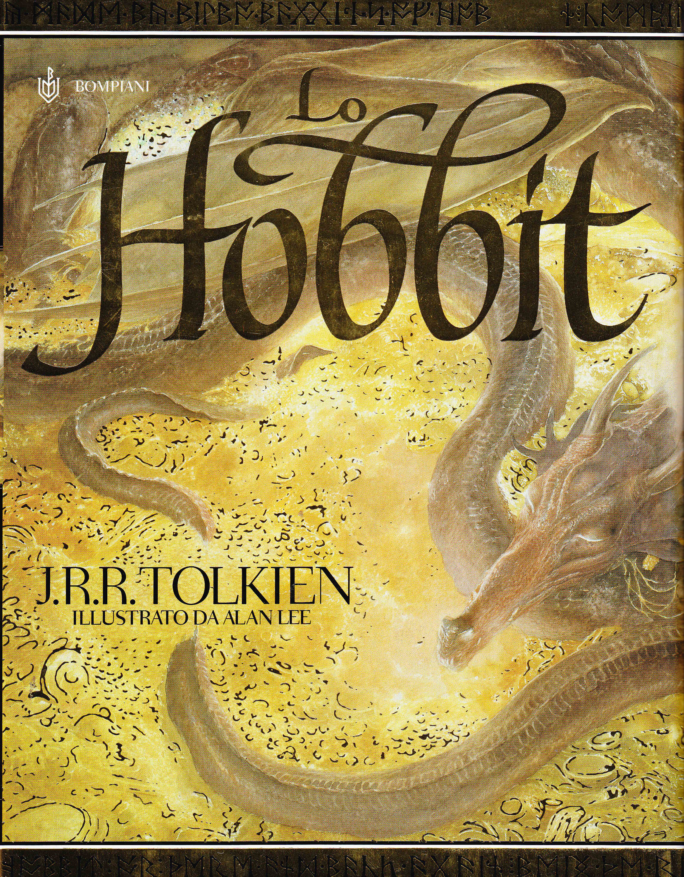 2003 Bompiani Lo Hobbit (I Libri di Tolkien) – illustrato da Alan Lee – mappe dell’Autore e traduzione di Elena Jeronimidis Conte (grande formato, rilegato con sovraccoperta). Copertina e Illustrazioni di Alan Lee