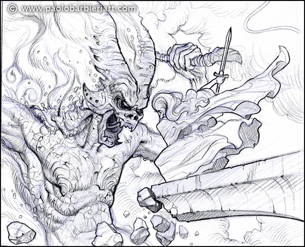 Esprimono l’infinito terrore e la suggestione di un inferno reale. «Mi sono scatenato con i paesaggi cercando di non disegnare una roccia fine a se stessa, ma rendere l’inferno un posto ancora più grande e palpabile di quello che lo stesso autore ha identificato», ha confessato l’artista. Barbieri ha dedicato al Signore degli Anelli una serie di schizzi, che riportiamo qui sotto.