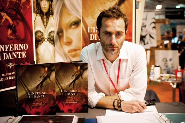 Paolo Barbieri non avrebbe bisogno di presentazioni: lavora per molte case editrici italiane ed europee, e ha illustrato copertine per libri di autori come Michael Crichton, Clive Clusser,Desmond Bagley, Ursula L. Guin, George R. R. Martin, Cornelia Funke, Umberto Eco, Sergej Luk’Janenko, Lian Hearn, Bernard Cornwell, Wilbur Smith, Marion Zimmer Bradley. Un discorso a parte meritano i libri di Licia Troisi, di cui ha realizzato tutte le copertine edite da Mondadori. Tra le sue opere più importanti c’è L’Inferno di Dante, avvolgente e sensazionale viaggio nel primo capitolo della Commedia del poeta italiano. Il background artistico di Paolo Barbieri, le sue passioni e la sua carriera lo portano a rappresentare l’inferno simile a quei luoghi per noi cari, descritti in molti romanzi fantasy, come la torre di Isengard o l’ingresso di Moria dl Signore degli Anelli, rendendo l’atmosfera ancor più surreale, suggestiva e magica. Anche i paesaggi trasmettono sensazioni forti. Luoghi aperti in cui perdersi e sprofondare.