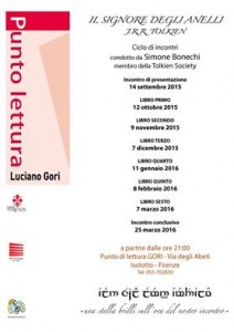 Nasce, o meglio rinasce, il gruppo di lettura del Signore degli Anelli a Firenze. Dopo il primo incontro organizzativo, il gruppo entra nel vivo dell’opera di J.R.R. Tolkien e con un incontro mensile, continuerà fino a marzo 2016, giusto in tempo per celebrare il Tolkien Reading Day. La notizia è bella perché il gruppo era stato molto attivo tra il 2005 e il 2007 e da esso era nato anche uno “smial” tolkieniano, naturalmente iscritto alla Tolkien Society. Ma andiamo per ordine.